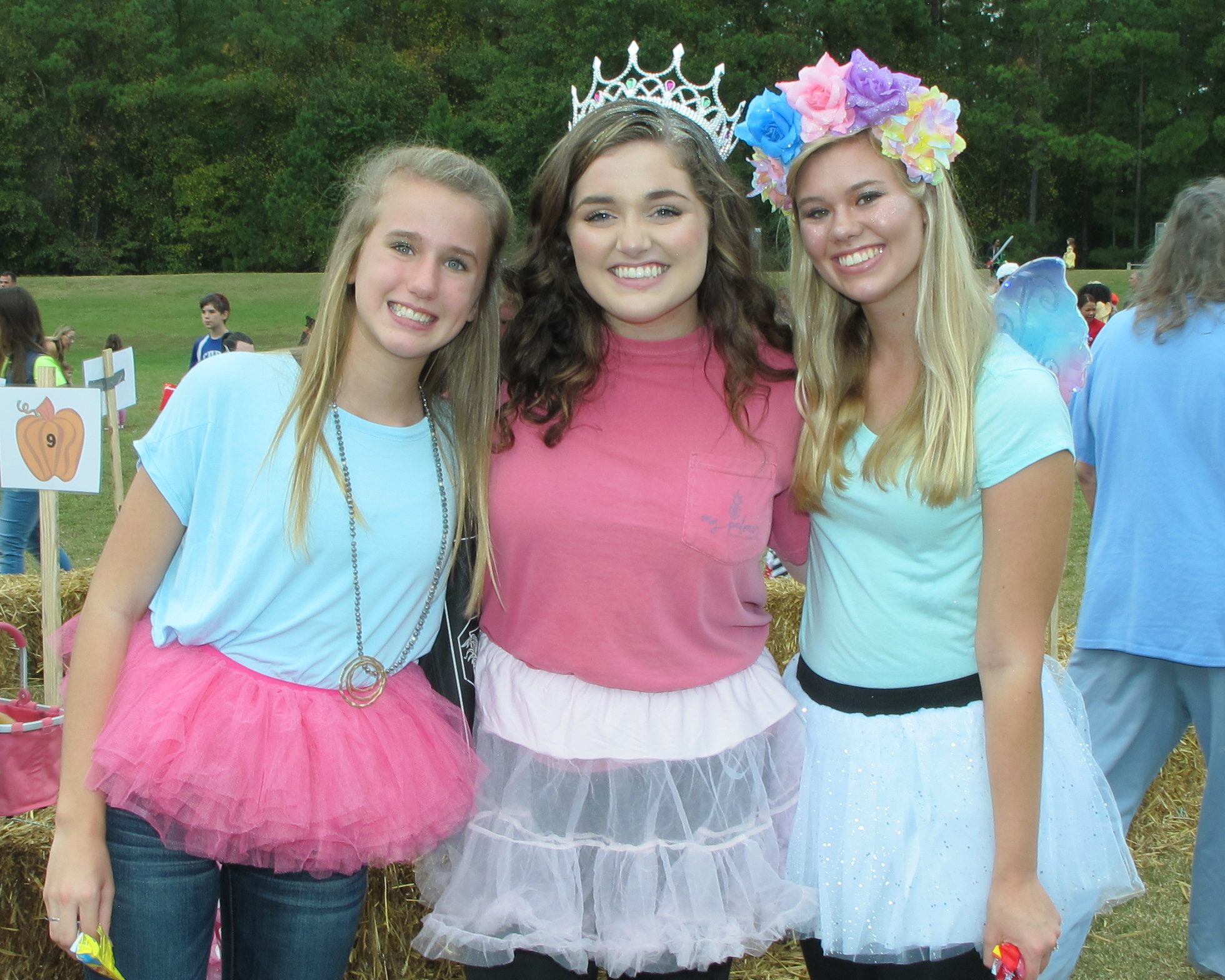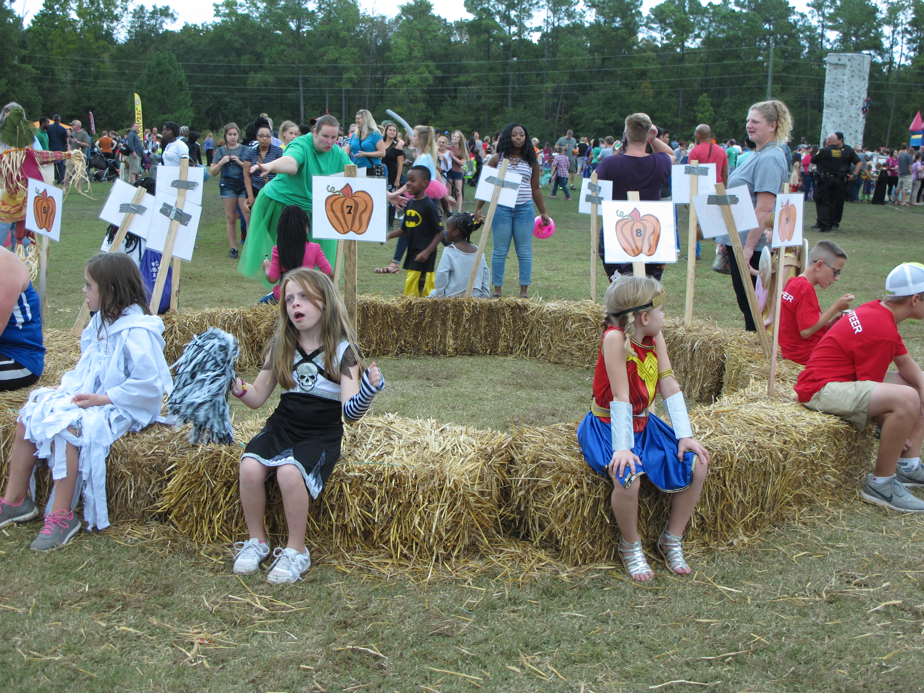There were hayrides and games throughout the field of costumes. Rapunzel let down her hair and kids walked around a circle of straw bales to music to earn dessert prizes. There was a mountain to climb and face painting.
