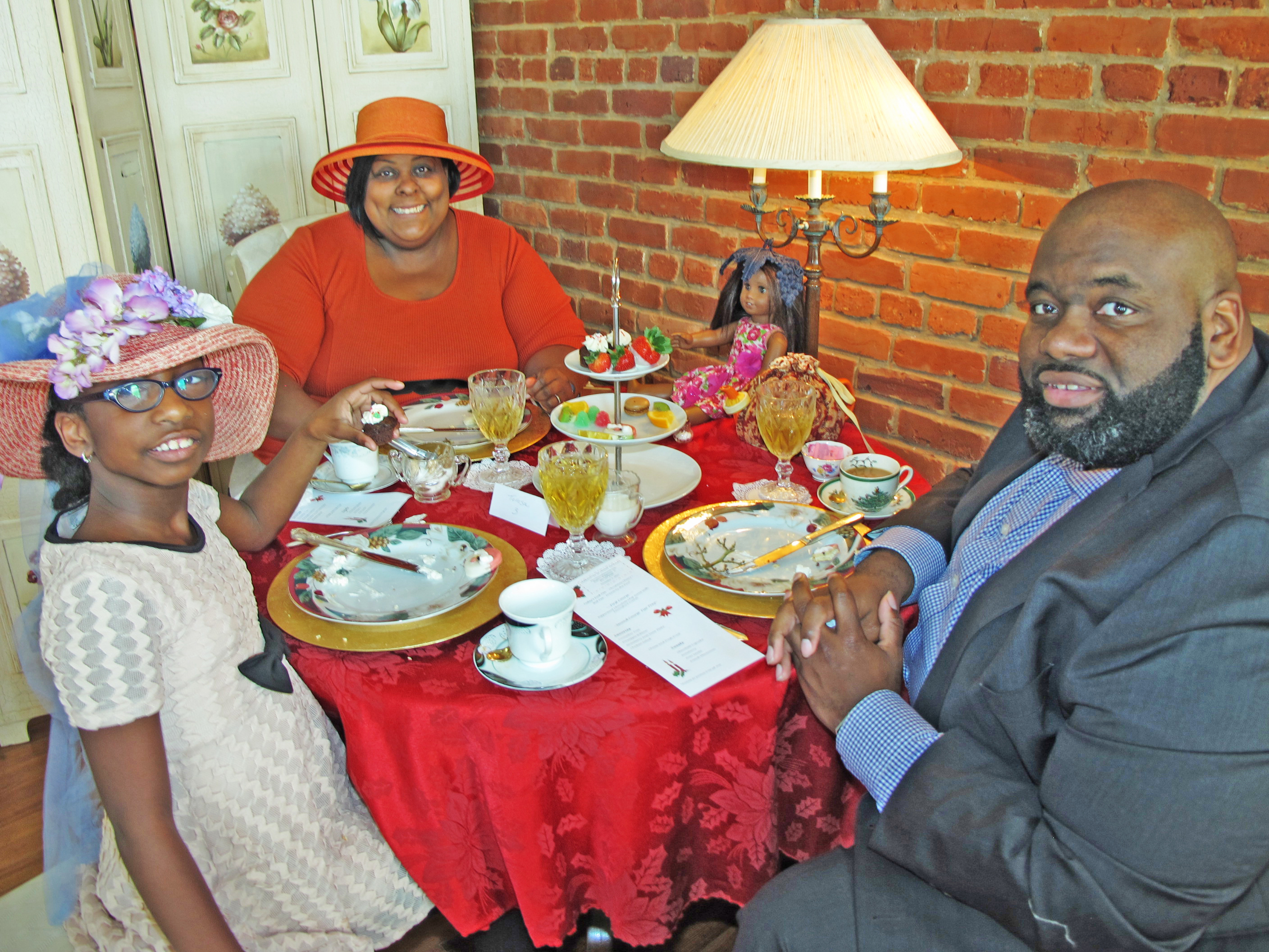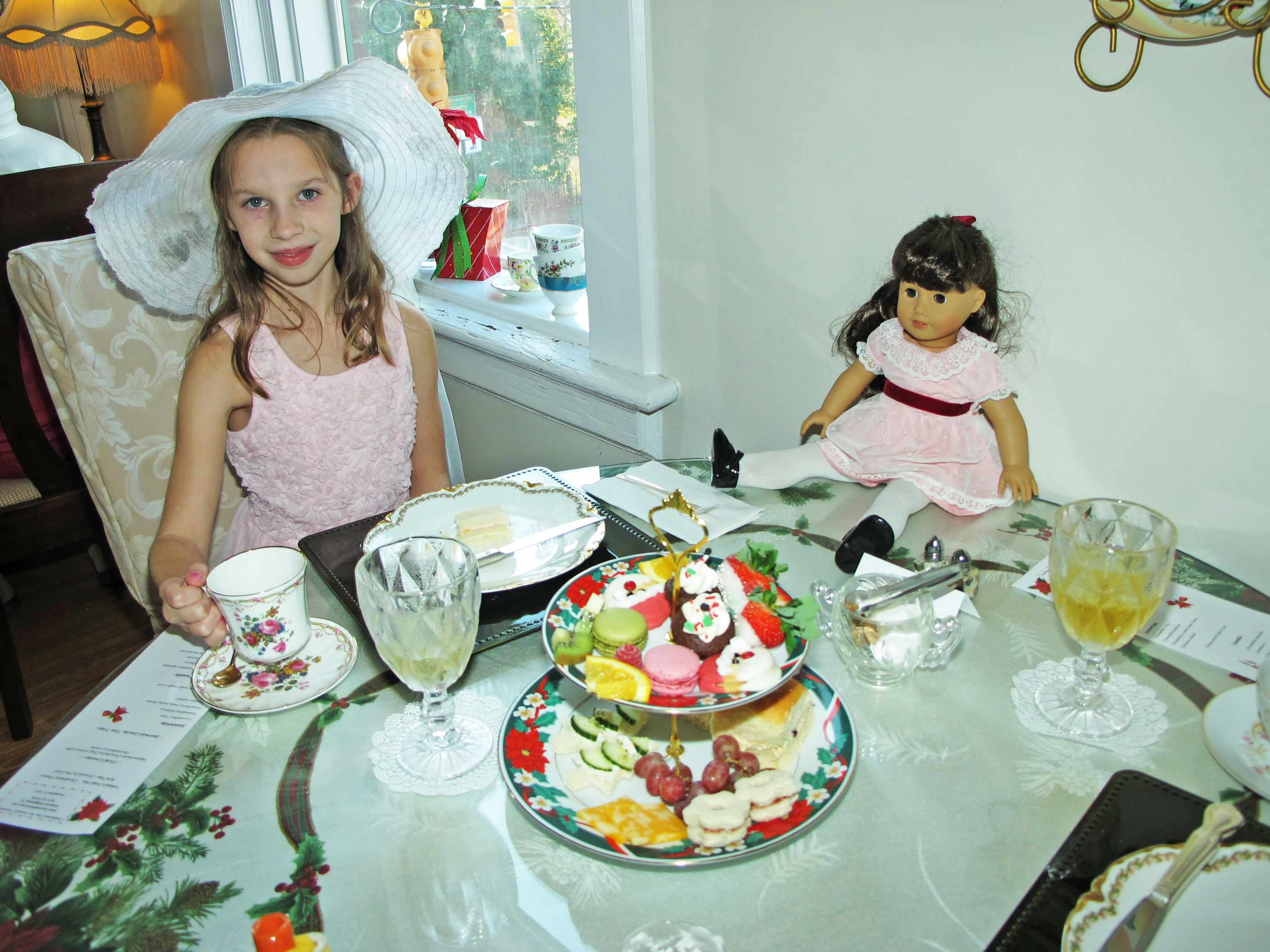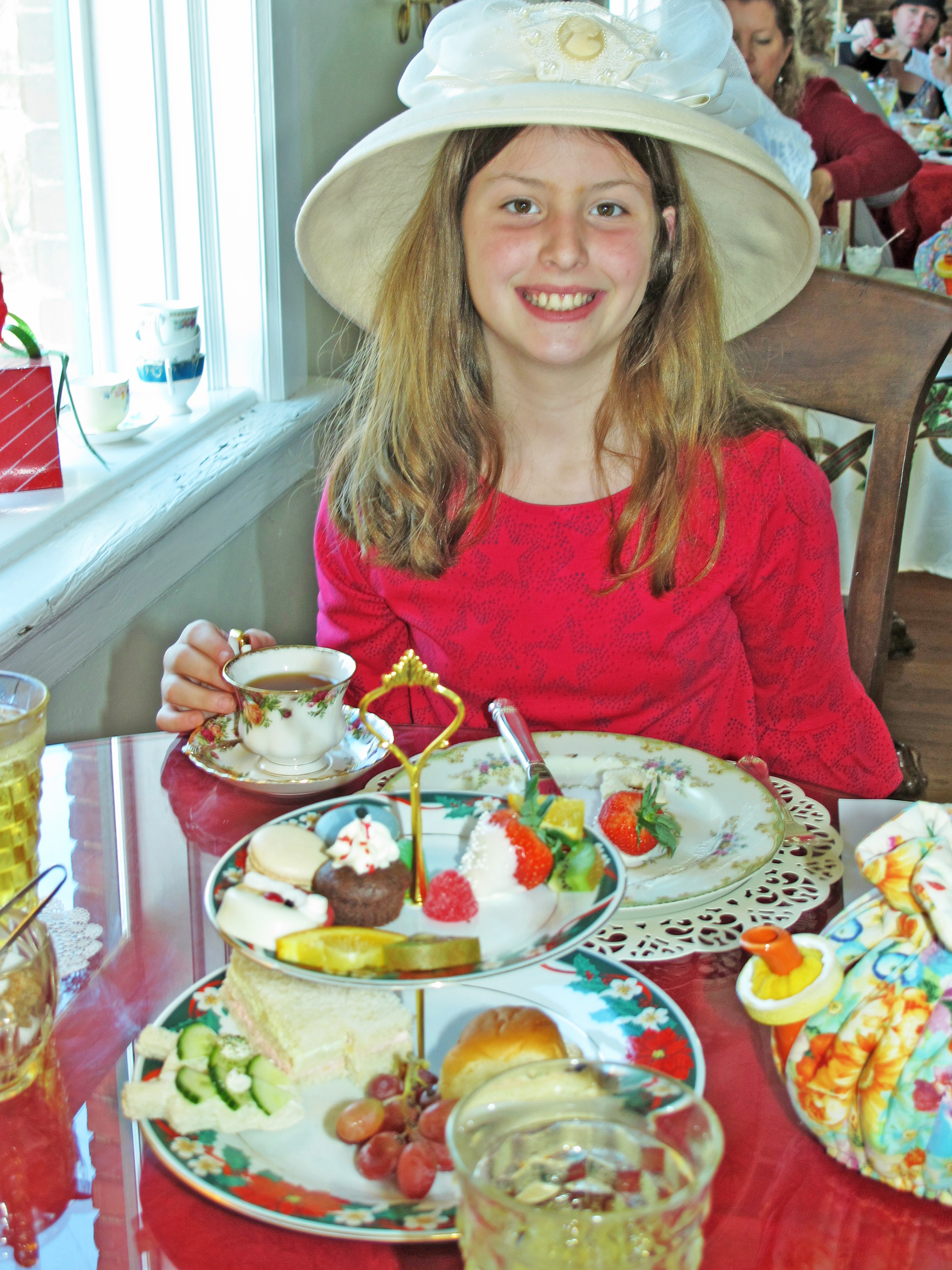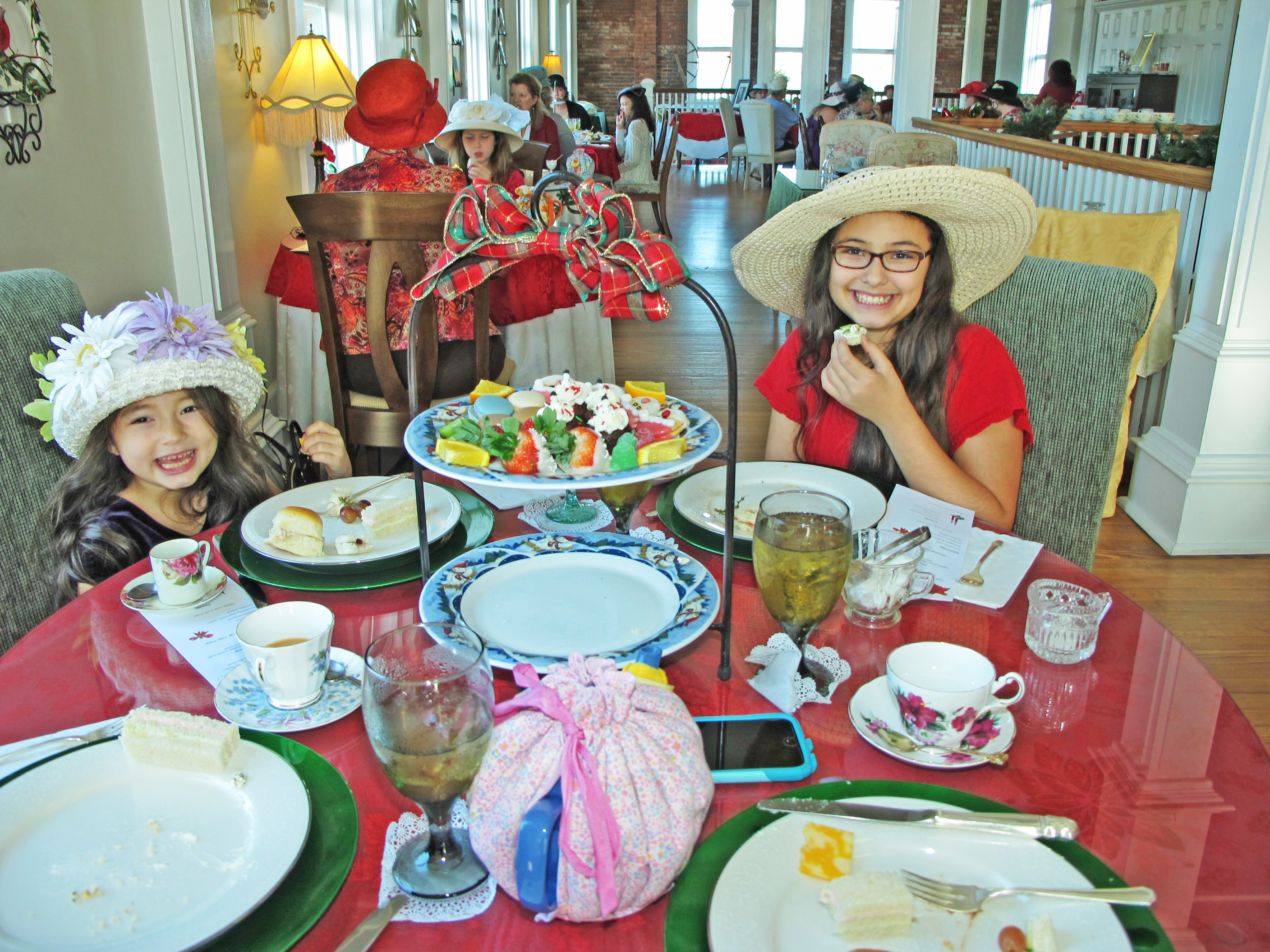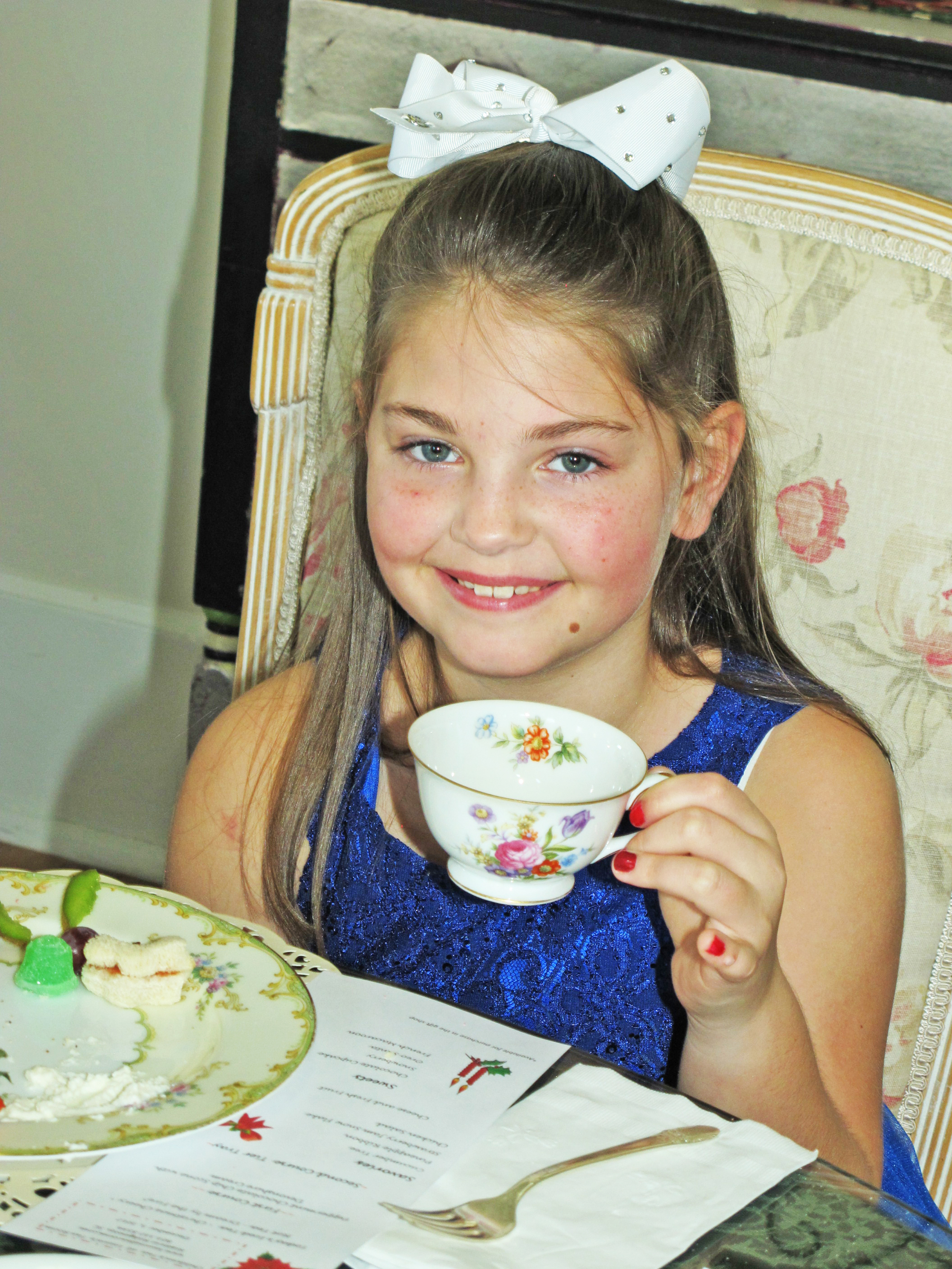 And no wonder. The room was filled with fun elegance, with little girls and their moms and grandmothers, all in hats, munching on Santa cookies, tiny sandwiches and, of course, sipping tea from cups as exquisite as Hyacinth Bucket’s hand-painted, blue periwinkle Royal Doulton.