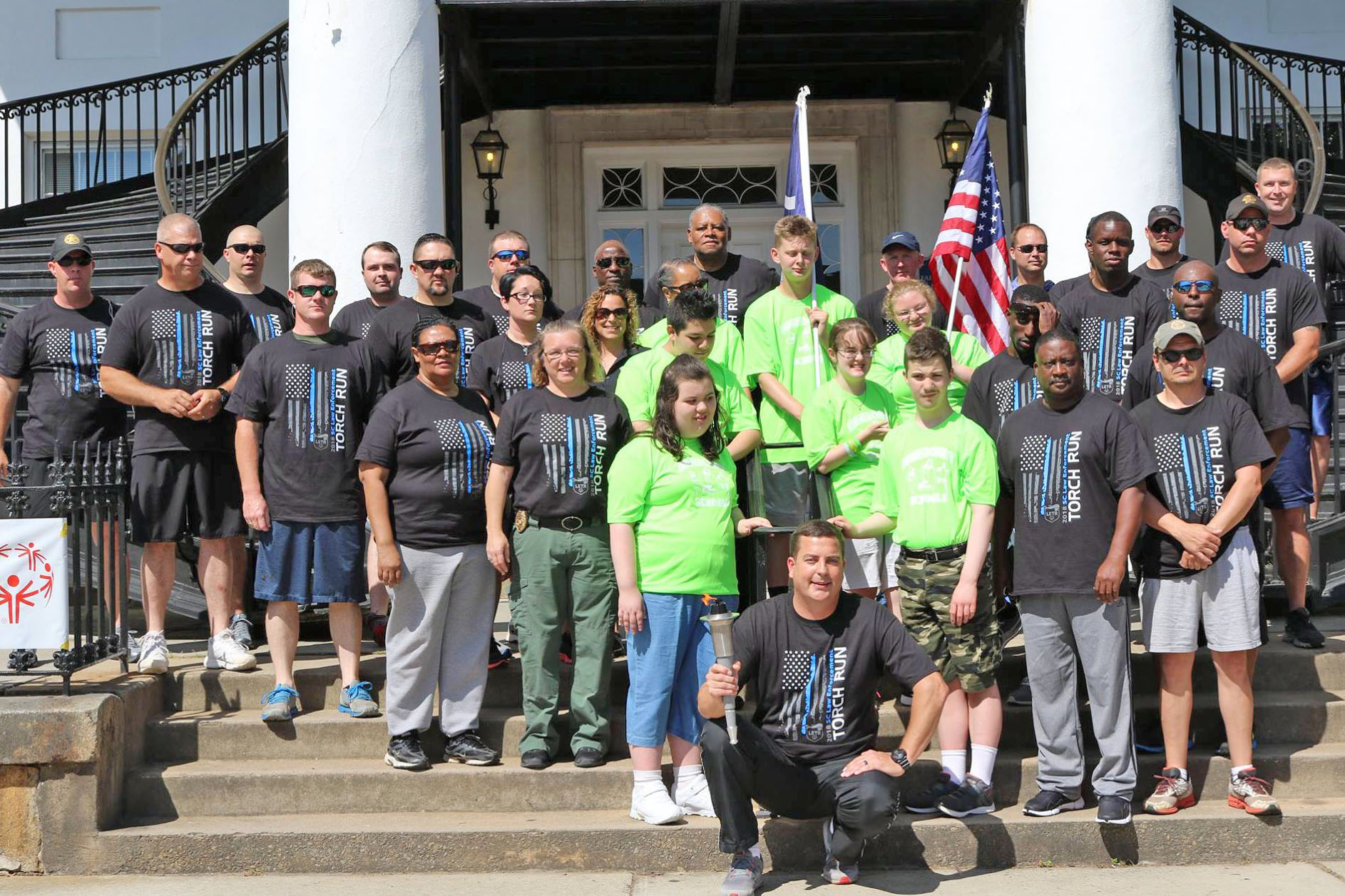 WINNSBORO – Fairfield County Sheriff’s Department, Winnsboro Department of Public Safety and other Fairfield County law enforcement agencies participated in the annual “County Line to County Line” S.C. Special Olympics Torch Run last Friday. Above, Winnsboro Police Chief John Seibles helps bring the torch down Congress Street to the courthouse, where it was passed to Sheriff Will Montgomery. Fairfield County athletes proudly carried the torch with law enforcement.
