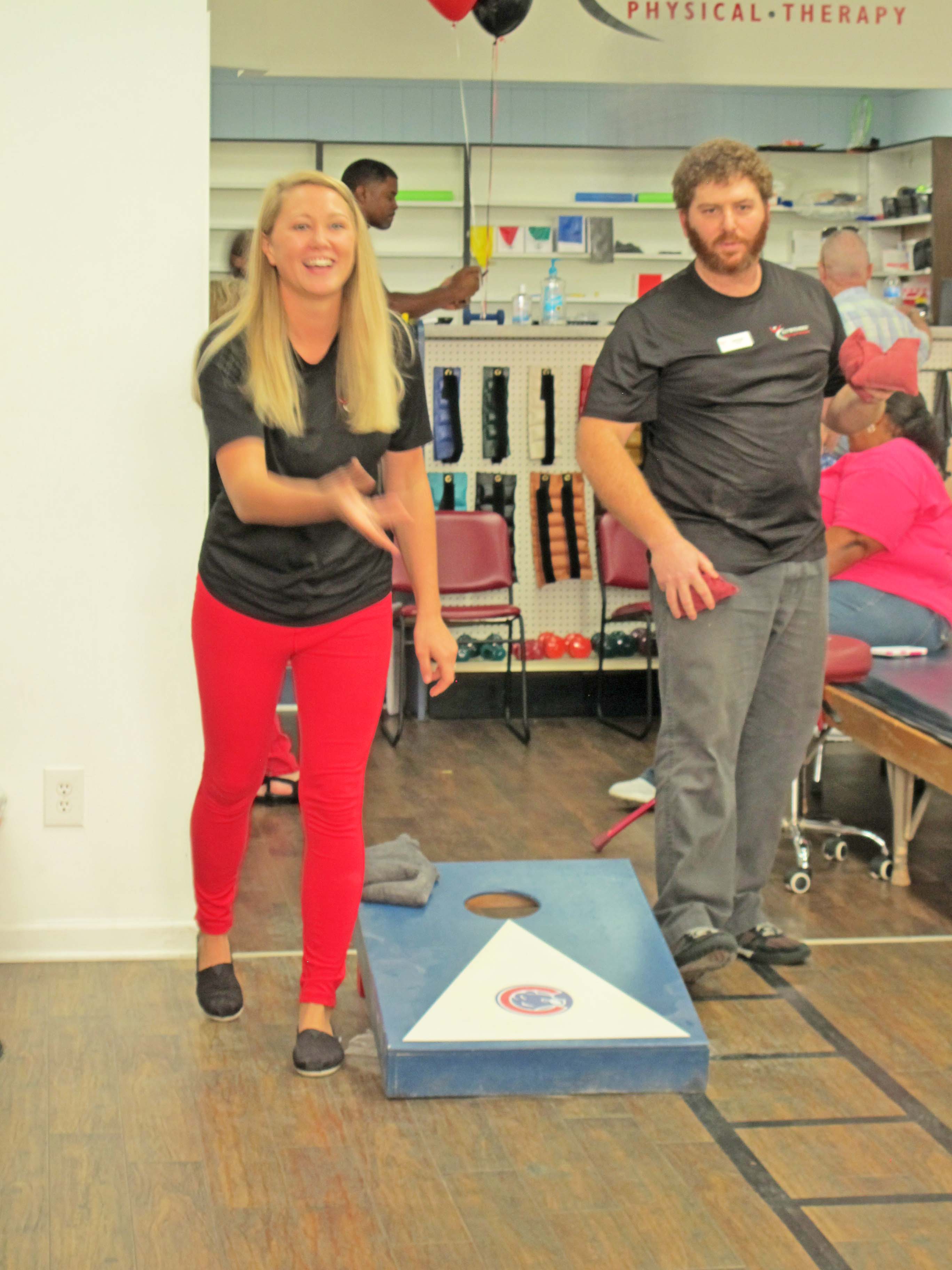 ”It was a much needed move,” Dr. Bryan Gray, the new facilities’ physical therapist supervisor, said during a re-open house and ribbon cutting last Friday that celebrated the expansion with food, door prizes, corn hole competitions and free shoulder and back massages given by massage therapist Jeff Cullen.