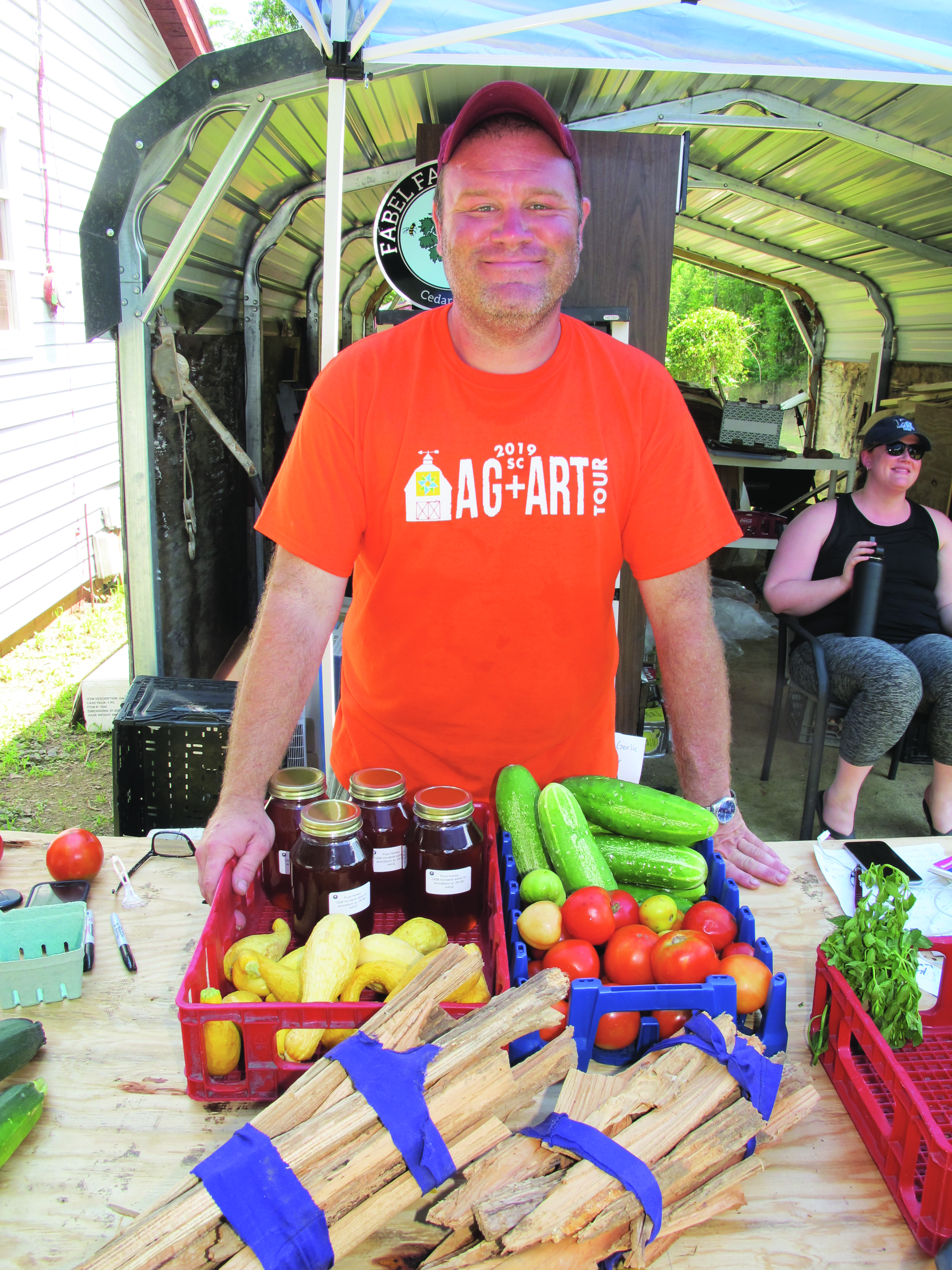 The inaugural Richland County Ag + Art Tour was a hit, thanks in part to several Blythewood farmers who showed off what they do best. Above center, Josh Fabel, owner of Fabel Farms in Cedar Creek, offered organic vegetables, honey produced on the farm and fatwood. At right, Keith Hearn, owner of Daly Greens, displays his hydroponic micro greens and wheat grass.