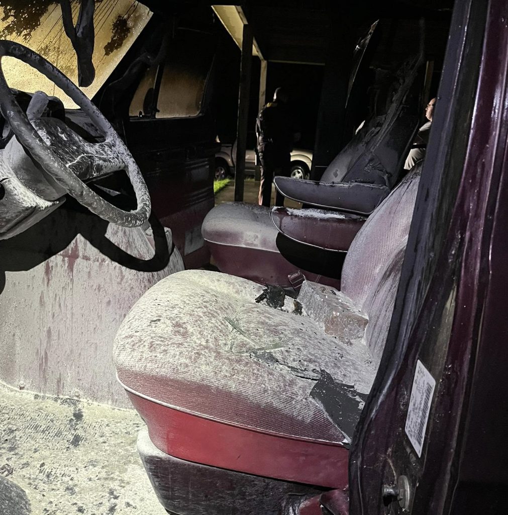 Upon arrival, firefighters extinguished the flames and found the driver’s side window smashed with a brick, the report stated.