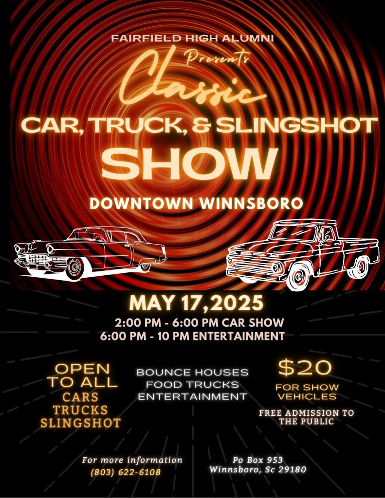 WINNSBORO – The Fairfield School Alumni Association is sponsoring a day of family fun and entertainment on Saturday, May 17 featuring the Association’s own classic car and truck club.