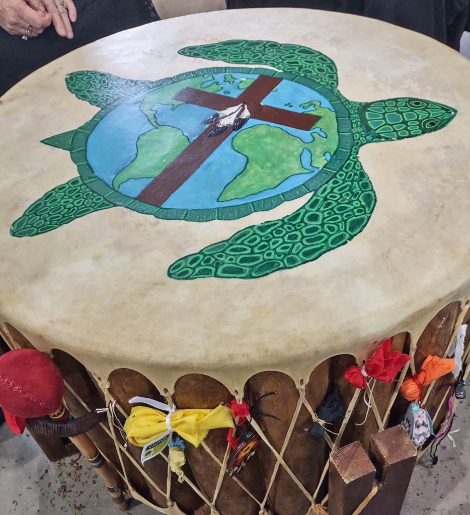 Marcia Campbell, who leads the intertribal Keepers of the Word Turtle Drum group, will be performing with her drum as well as performing a traditional dance. The drummers are an all-female group associated with Ojibwa, Cherokee, Creek, Choctaw, Catawba, and Wassamassaw tribal heritage. They are known for sharing Native American traditions with audiences and offering outreach ministries. They offer educational programs, host ceremonial services, and participate in various cultural events.