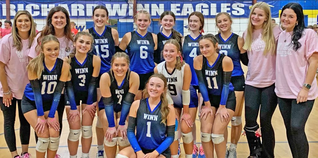 Jefferson Davis took the first game 25-22, but Richard Winn rallied behind serves of Mary Margaret Swearingen, Abby Lewis, and Catherine Blair Spires for a 25-12 win in game two. The Eagles easily took a 25-9 win in game three.