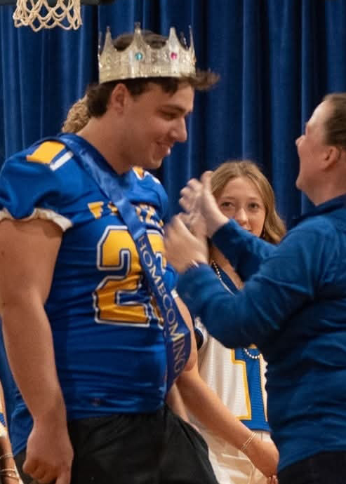 Jes Sharpe was crowned during the school’s pep rally ahead of Friday’s game. Votes for King were given in the form of canned-good donations, and over 500 cans of corn were donated to crown Sharpe this year’s Homecoming King.