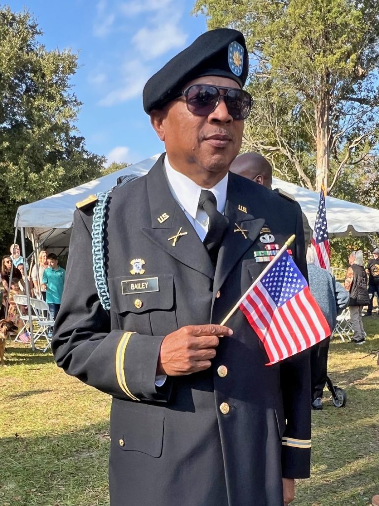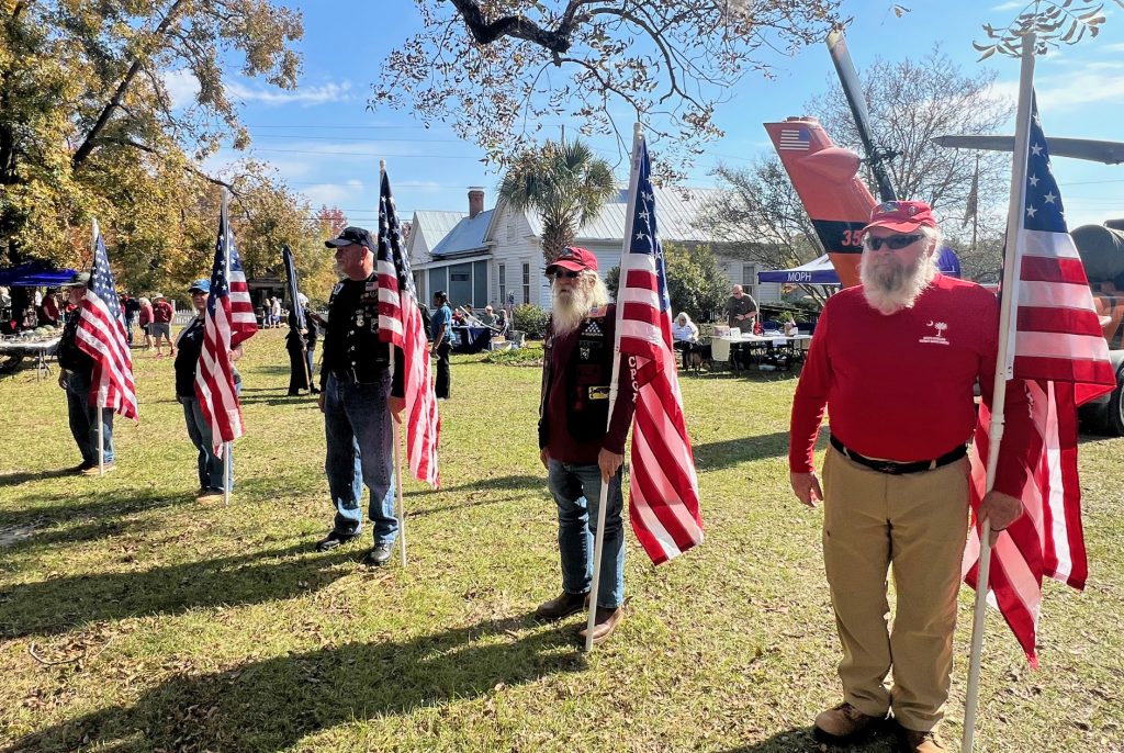 BLYTHEWOOD – Under clear blue skies, white clouds, and a giant American flag, a hundred or so guests gathered on the lawn of the Langford-Nord House on McNulty Road to attend the 15th annual Blythewood Veterans Day Celebration. The program was presented on Saturday by the Blythewood Historical Society & Museum and the Town of Blythewood.