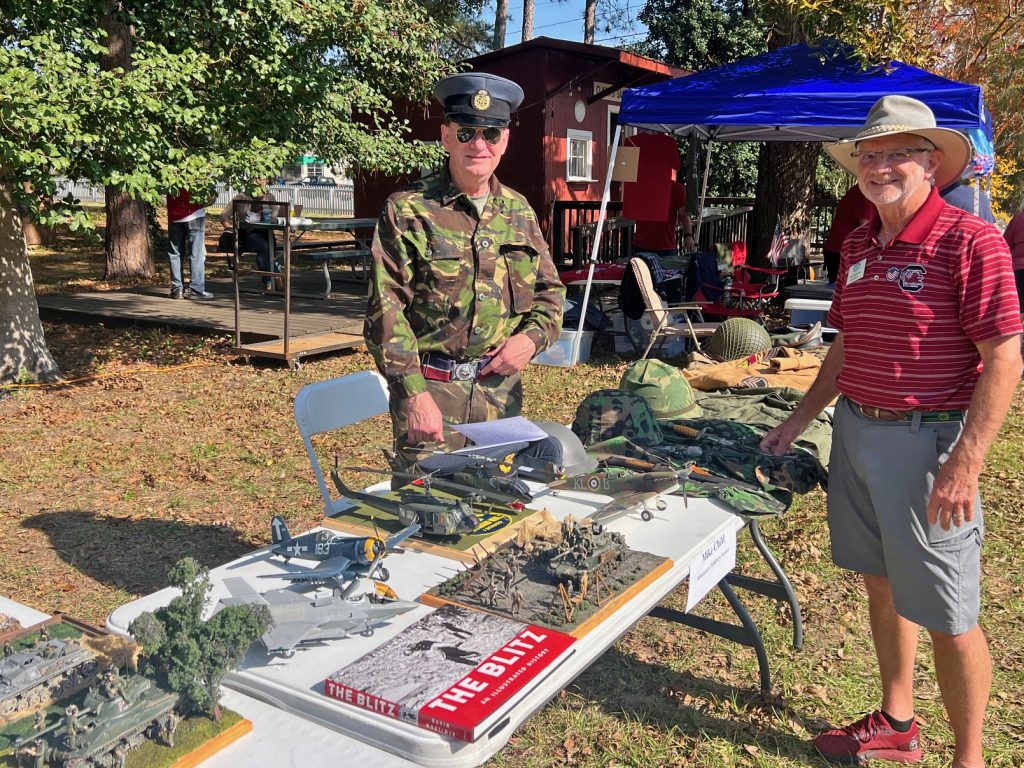 There were 17 exhibitors on the grounds including several American Legion and VFW Posts, Blue Star Mothers, Bob Redfern vintage military vehicles, a helicopter, the SC State Military Museum, and the Hud McLean family’s vintage military Jeep.