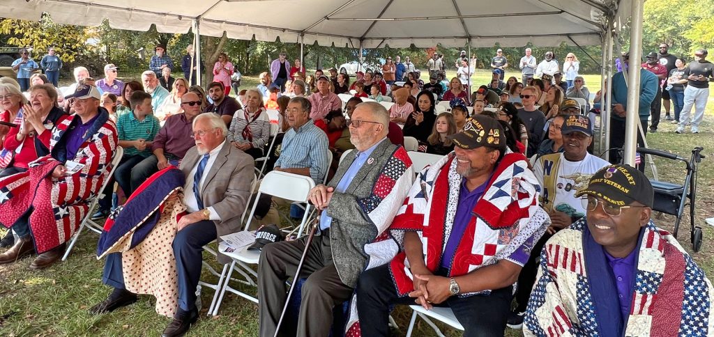 Hurlbert thanked the veterans for their service, their sacrifice, and their valor and told them how much the quilters loved creating the quilts for them.