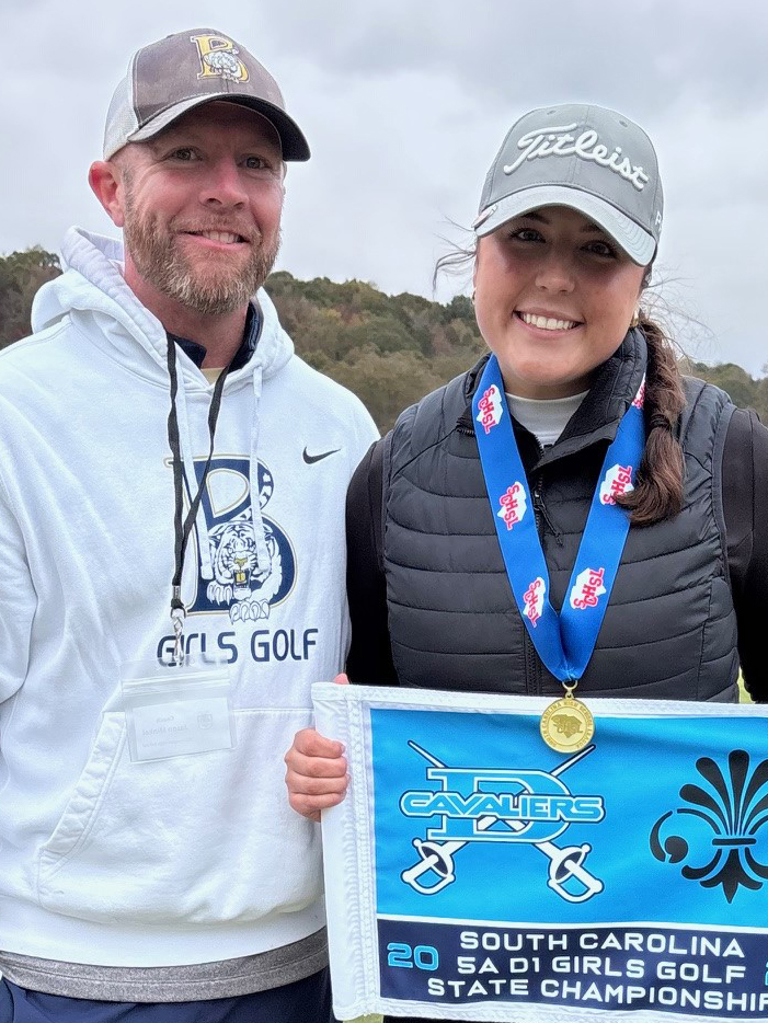 Her first state championship win came in 2022 at the par-72 course at Simpsonville’s Holly Tree Country Club, when she shot a 71-72. The second game in 2023 at the then-par-73 course Mid-Carolina Club, when she fired a 68-67.