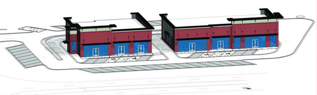 The two one-story, glass-front buildings are intended to house a mix of restaurants, retail, and medical and dental offices. | Contributed