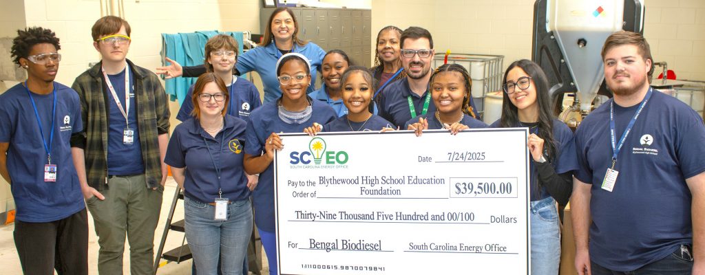 Representatives from the South Carolina Energy Office, a division of the SC Office of Regulatory Staff, toured the school’s specialized biodiesel classroom to honor the ongoing success of the Bengal Biodiesel program. The visit was highlighted by the presentation of a ceremonial check, representing the state’s financial and resource support over the course of a four-year collaboration.