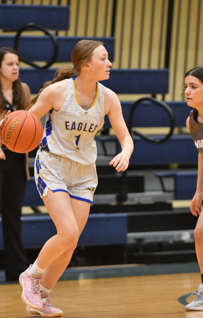 With just 12 seconds left in the fourth, a clutch steal and layup by Region Tournament MVP Kate Baker appeared to give the Eagles a two-point lead—and likely the title—before a controversial double-dribble call nullified the basket.