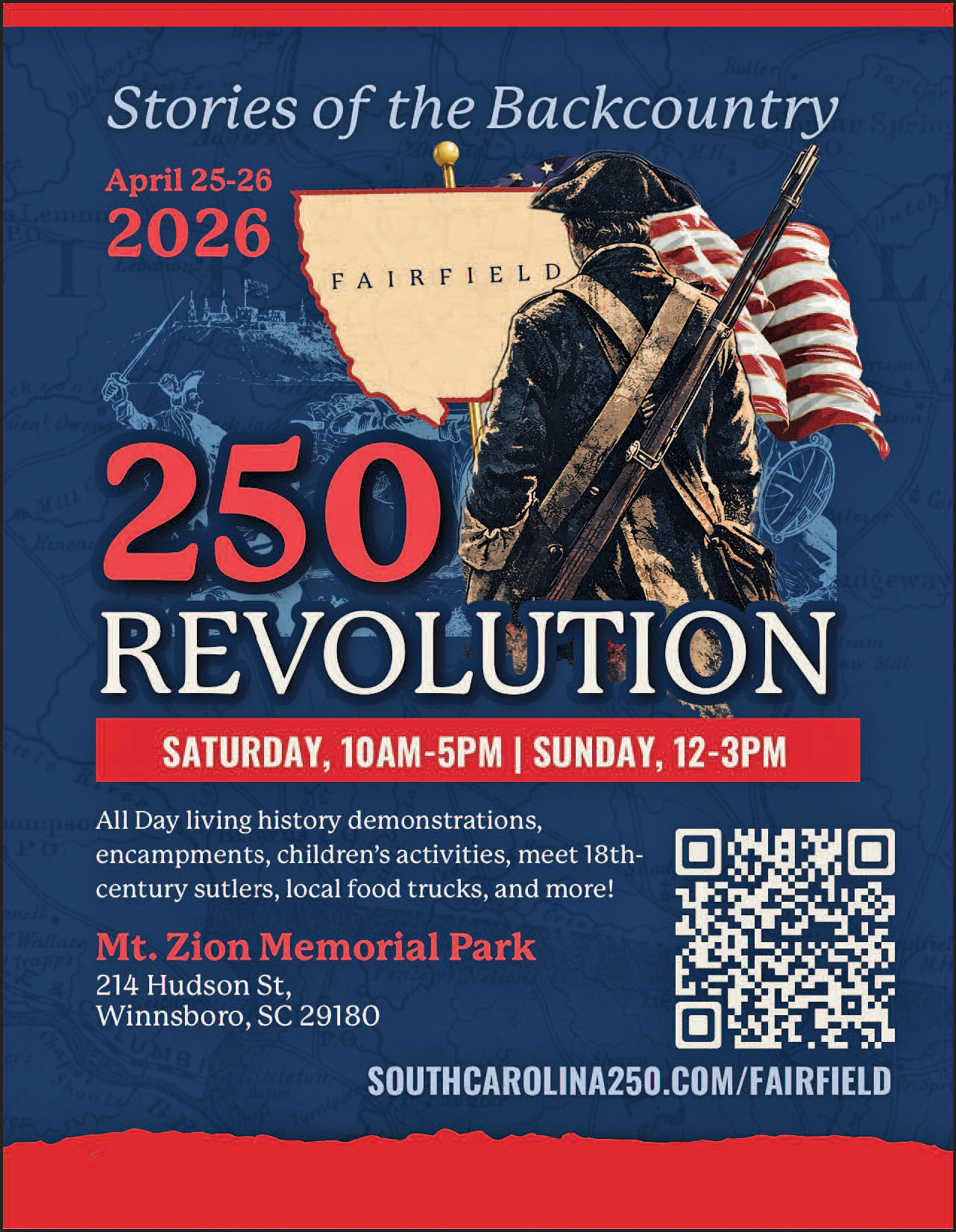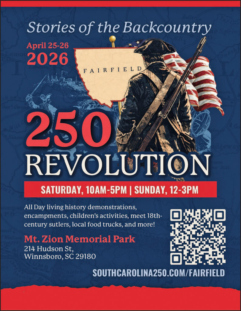 The celebration and re-enactment is free to the public. It is being paid for by a $53,800 S.C. 250 Commission grant secured by the Fairfield County Historical Society and organized by community volunteers.