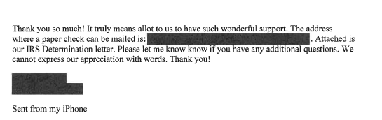 A Google search of the donor’s email pledging the $2,000 turned up an identical donor email that was posted by Madeleine Rocha of Feline Lucky Rescue in Redwood City, CA., that was also targeted by the donor scam most frequently referred to as the ‘David Buchanan donation scam’ or the Buchanan Family Foundation scam.’