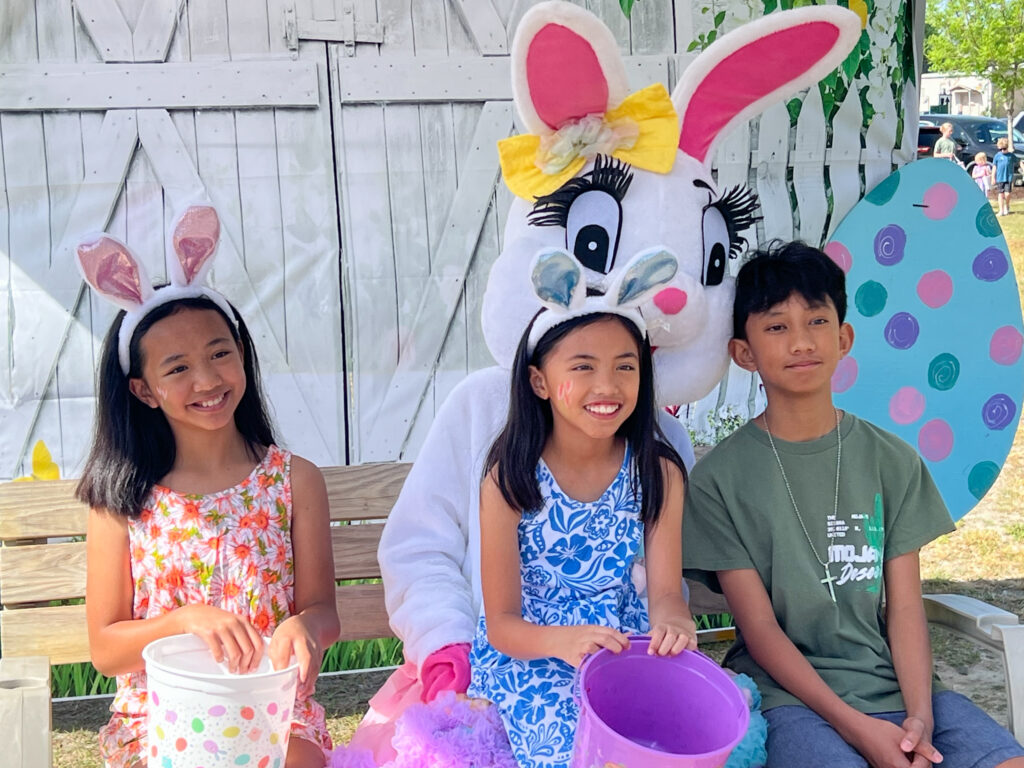 But that wasn’t the only fun at the Village Church’s 24th annual Eggstravaganza. There were big slides, face painting, balloon animals, games, a prayer booth and, of course, the big bunny hopping by for Easter photos with the kids.