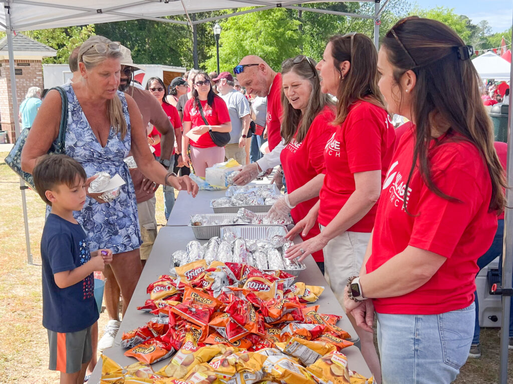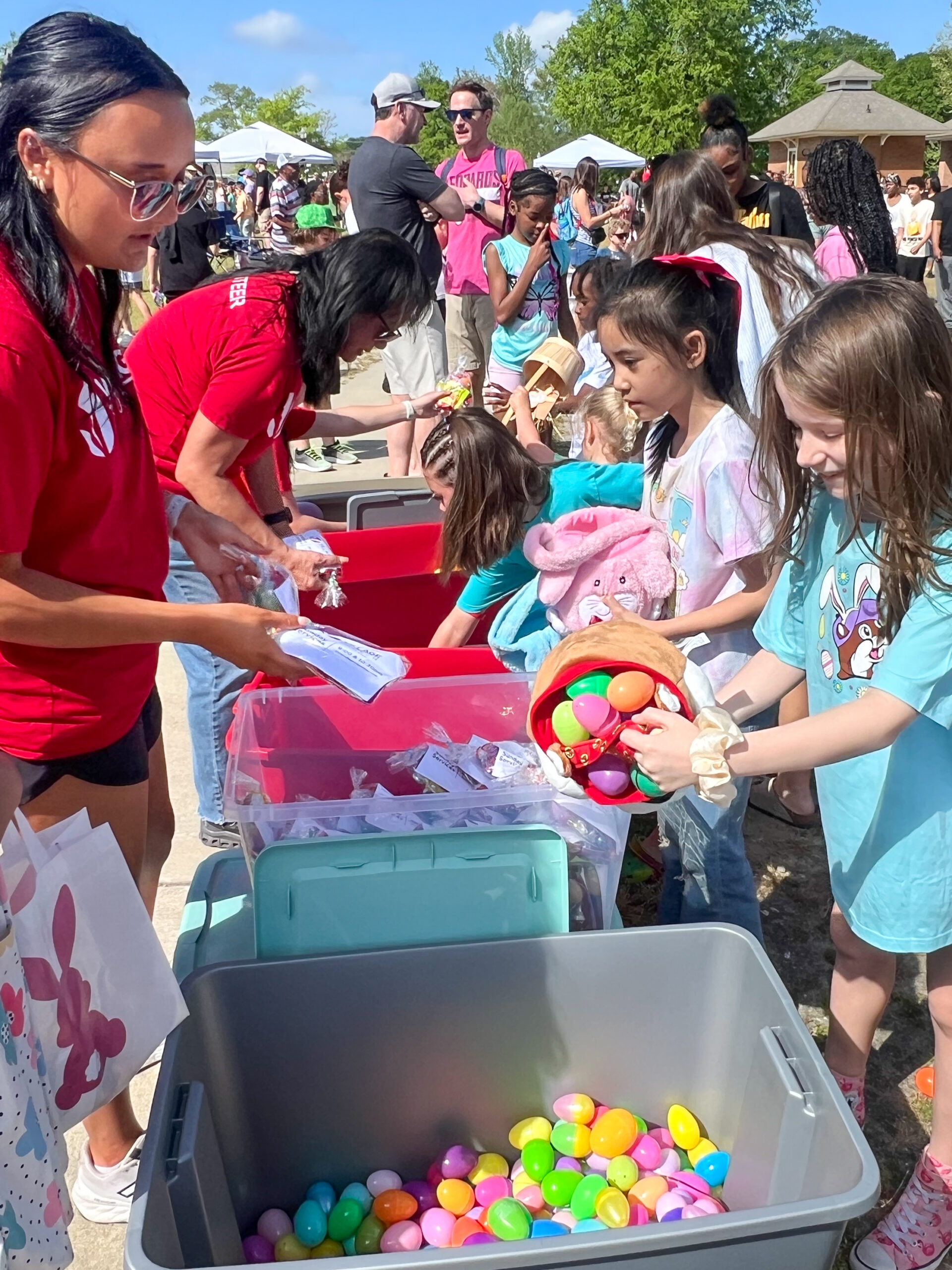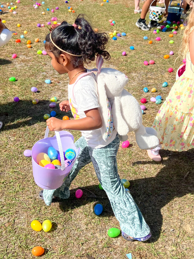 After a prayer by Village Church Pastor Erik Estep, the kids were on the hunt, chasing down more than 22,000 plastic eggs that they exchanged for bags of candy before heading to the food tent with their families for free hot dogs and barbeque sandwiches with all the trimmings.