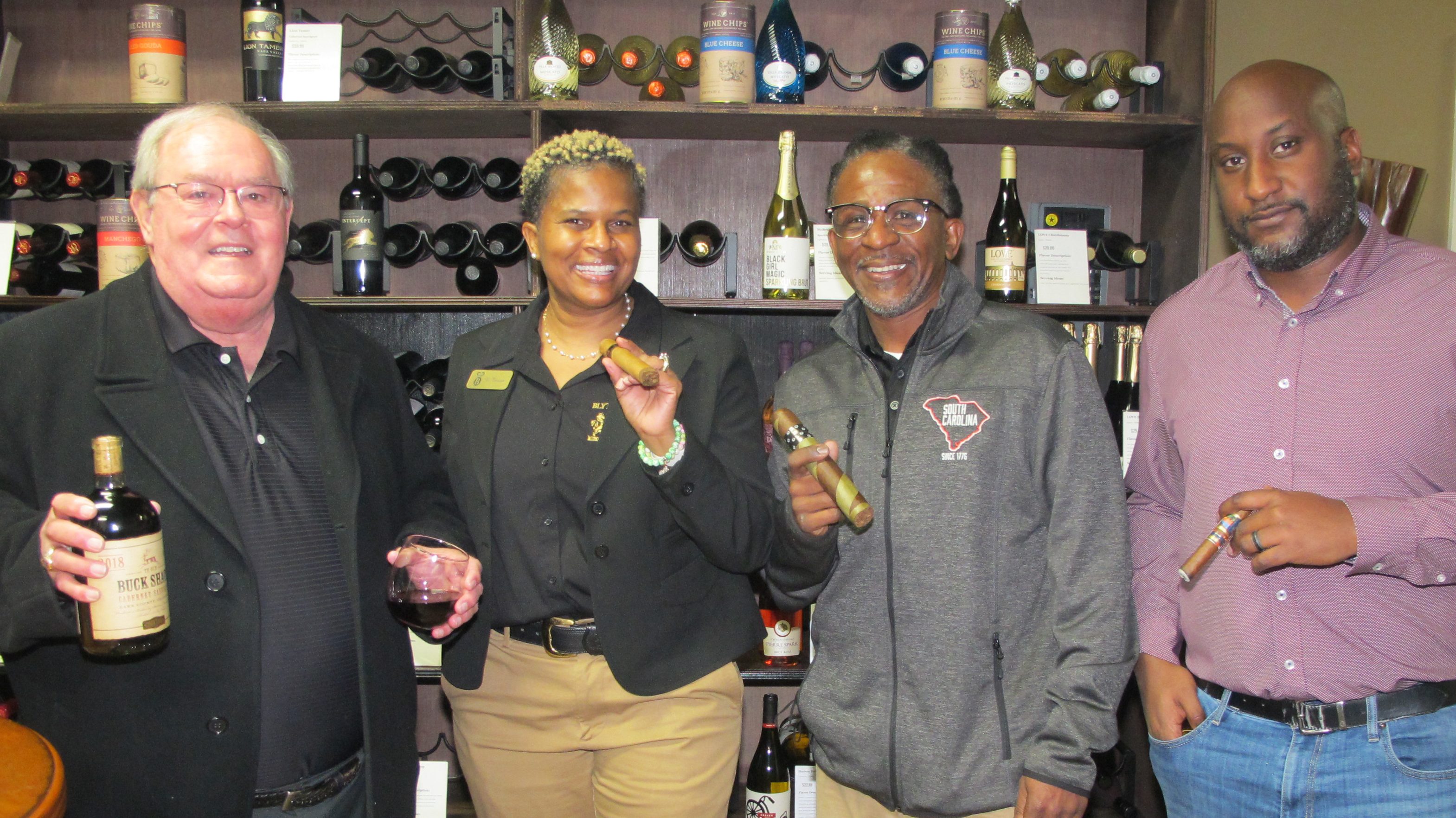 BLYTHEWOOD – Cutting the ribbon during an After Five event to celebrate Blythewood Cigar and Wine are, from left: Phil Frye, director of the Blythewood...