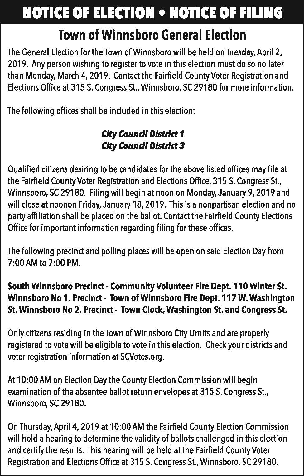 STATE OF SOUTH CAROLINA COUNTY OF FAIRFIELD IN THE PROBATE COURT NOTICE TO CREDITORS OF ESTATES All persons having claims against the following estates are...
