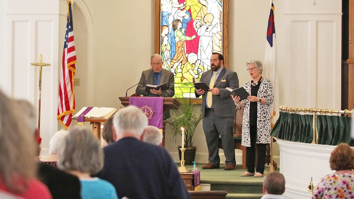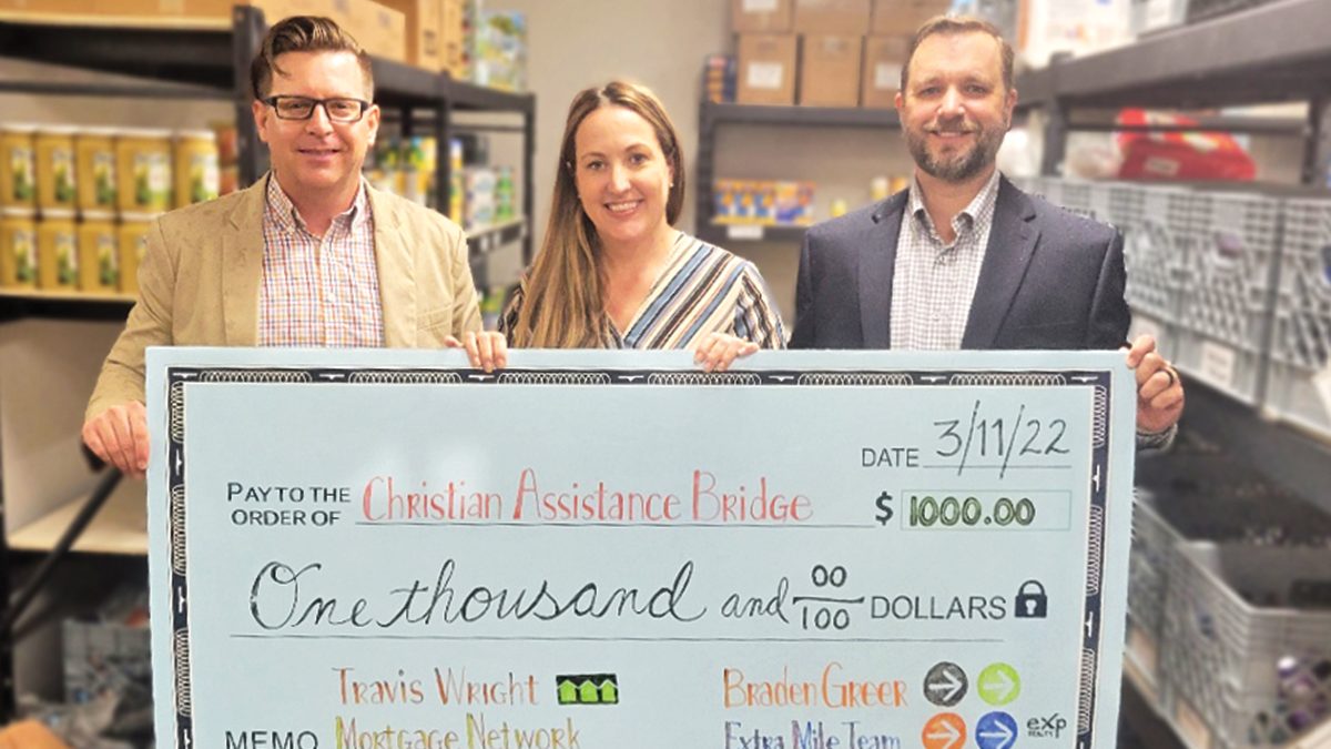 Braden Greer of eXp Realty, Travis Wright of Mortgage Network, assisted by Pastor Chris Hanley (not pictured) of Sandy Level Baptist Church, presented a $1,000...
