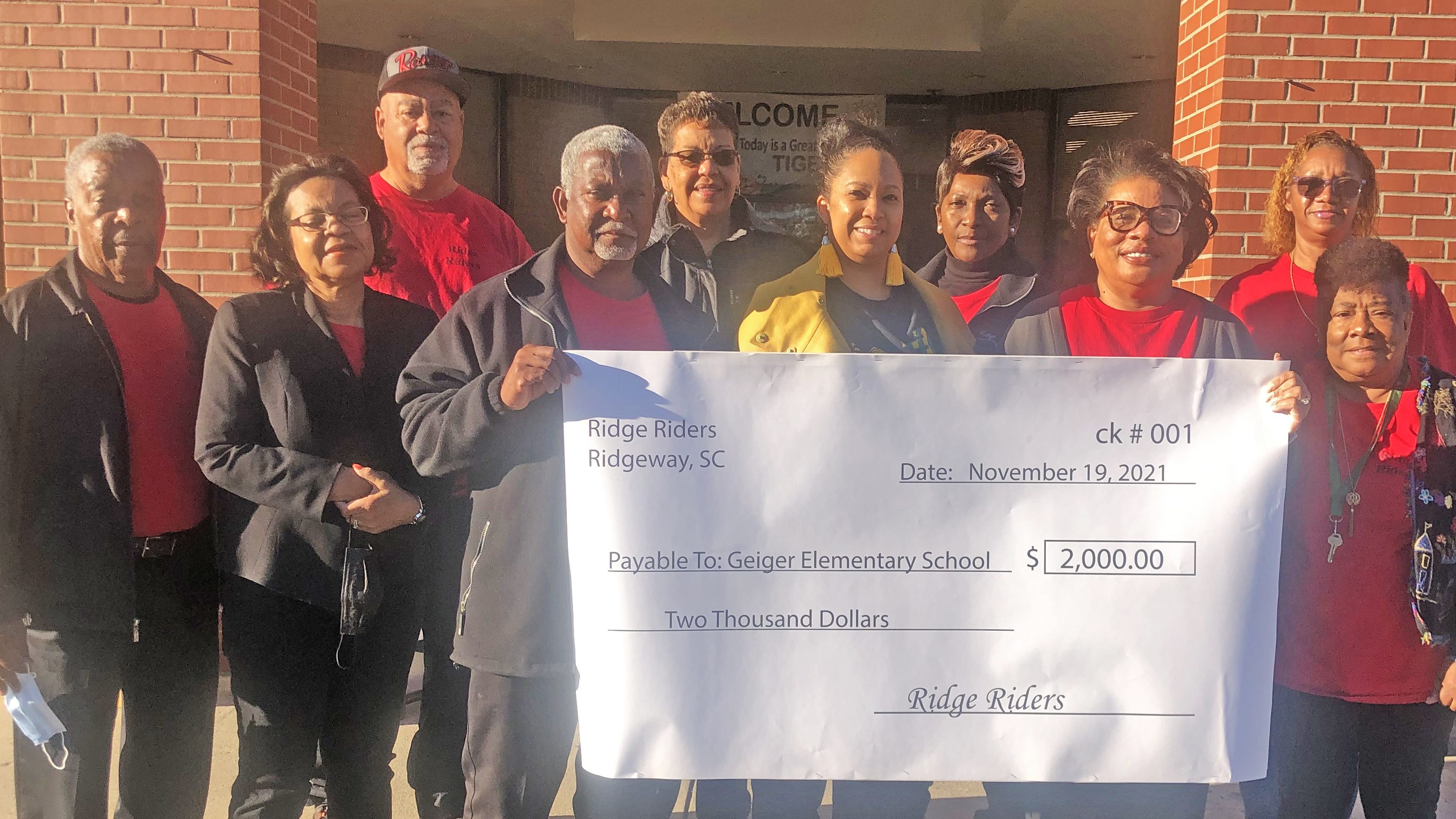 RIDGEWAY – The Ridge Riders showed up at Geiger Elementary School bright and early Friday morning and handed the school’s Principal, Myra Bramlett a $2,000...