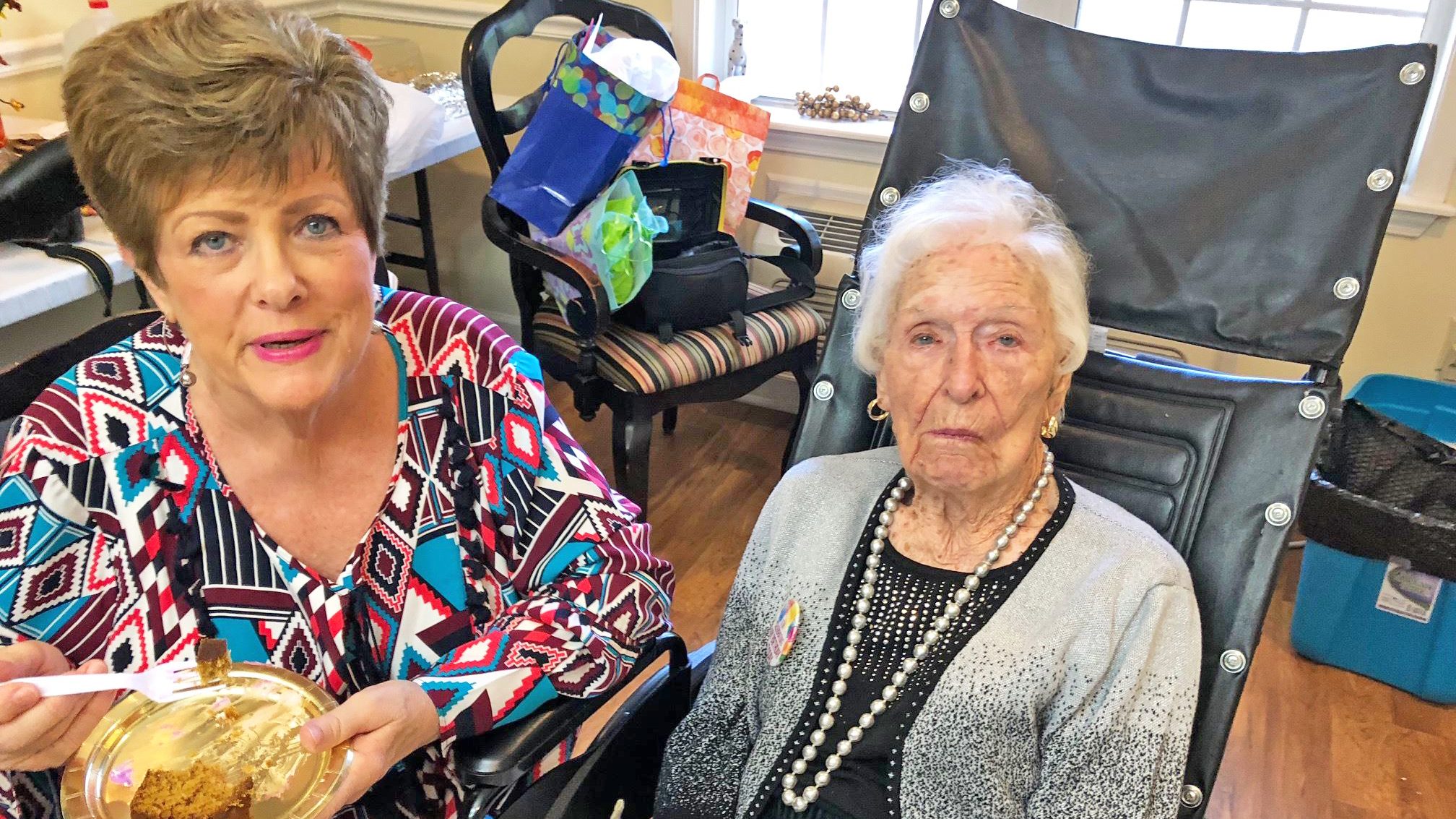 Bobbie Dove celebrates the 100th birthday of her mother- in-law, Lola Dove, right, during a birthday party hosted by Lola’s son Paul and daughter Jeannie...