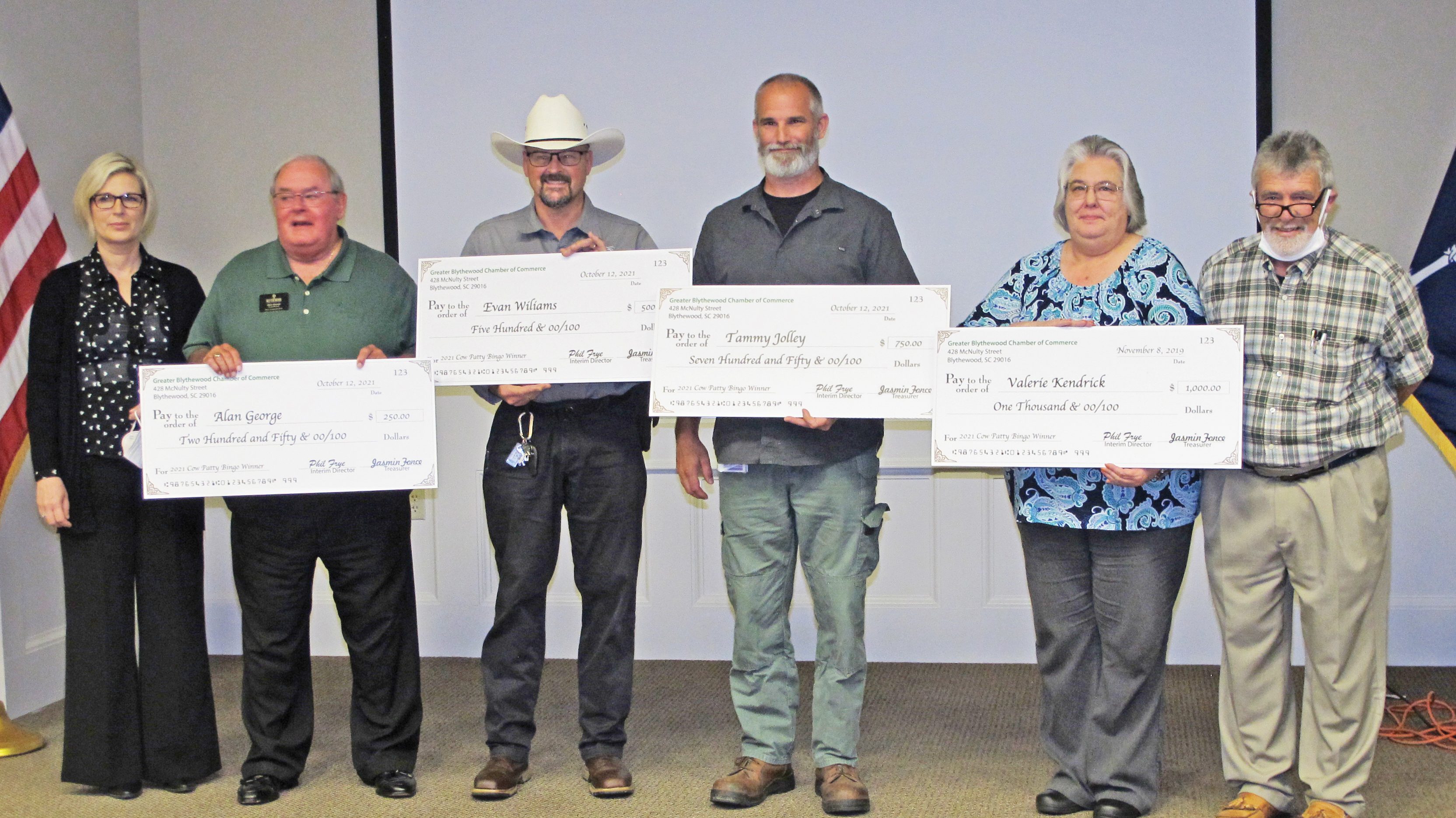 BLYTHEWOOD – The winners of the Oktoberfest Cow Patty Bingo, above, were announced at the Blythewood Chamber meeting Tuesday morning. They are, from left: Alan...