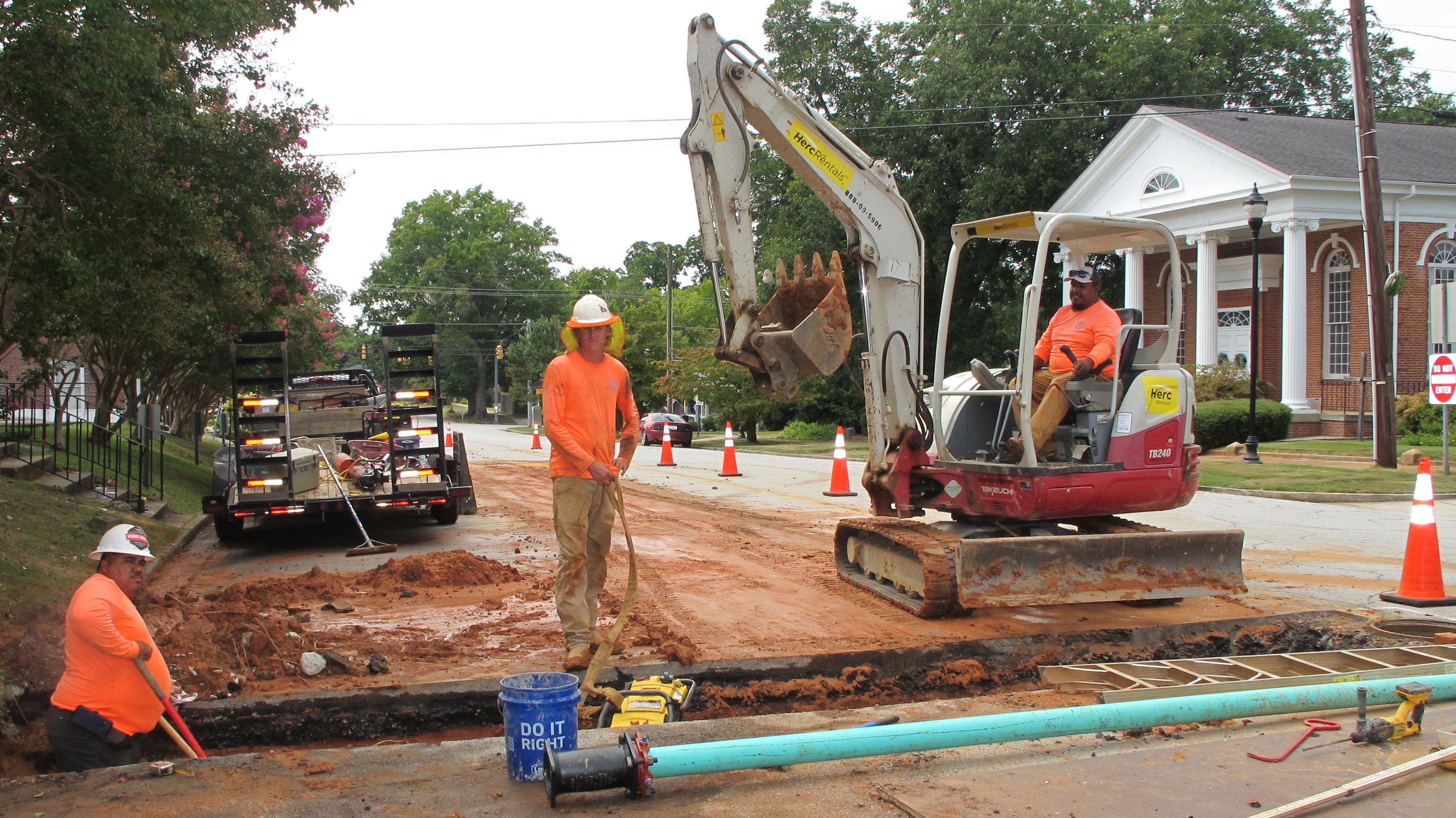 WINNSBORO – Advantage Outdoors construction company out of Gilbert has spent the last few weeks laying sewer lines to the Courthouse for two new restrooms...