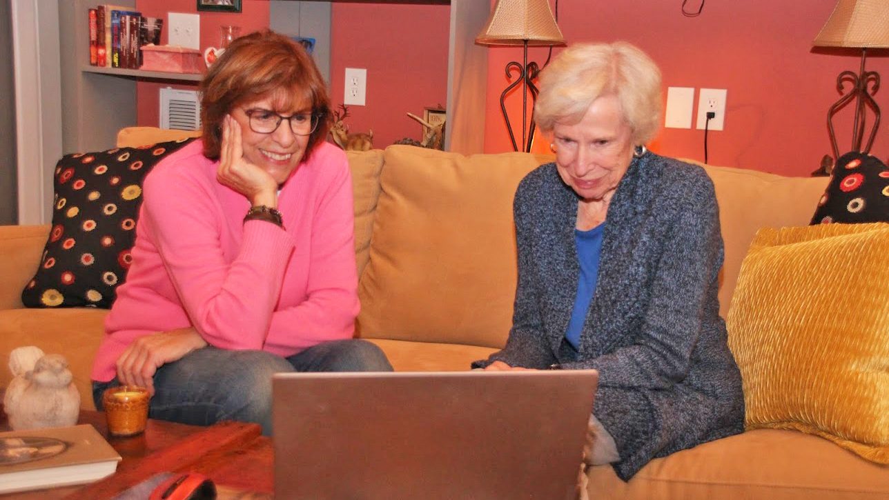 WINNSBORO – Winnsboro’s Laurens Livings, right, watches the virtual New York book launch party for her son, Jack Livings’, first novel, The Blizzard Party. With...