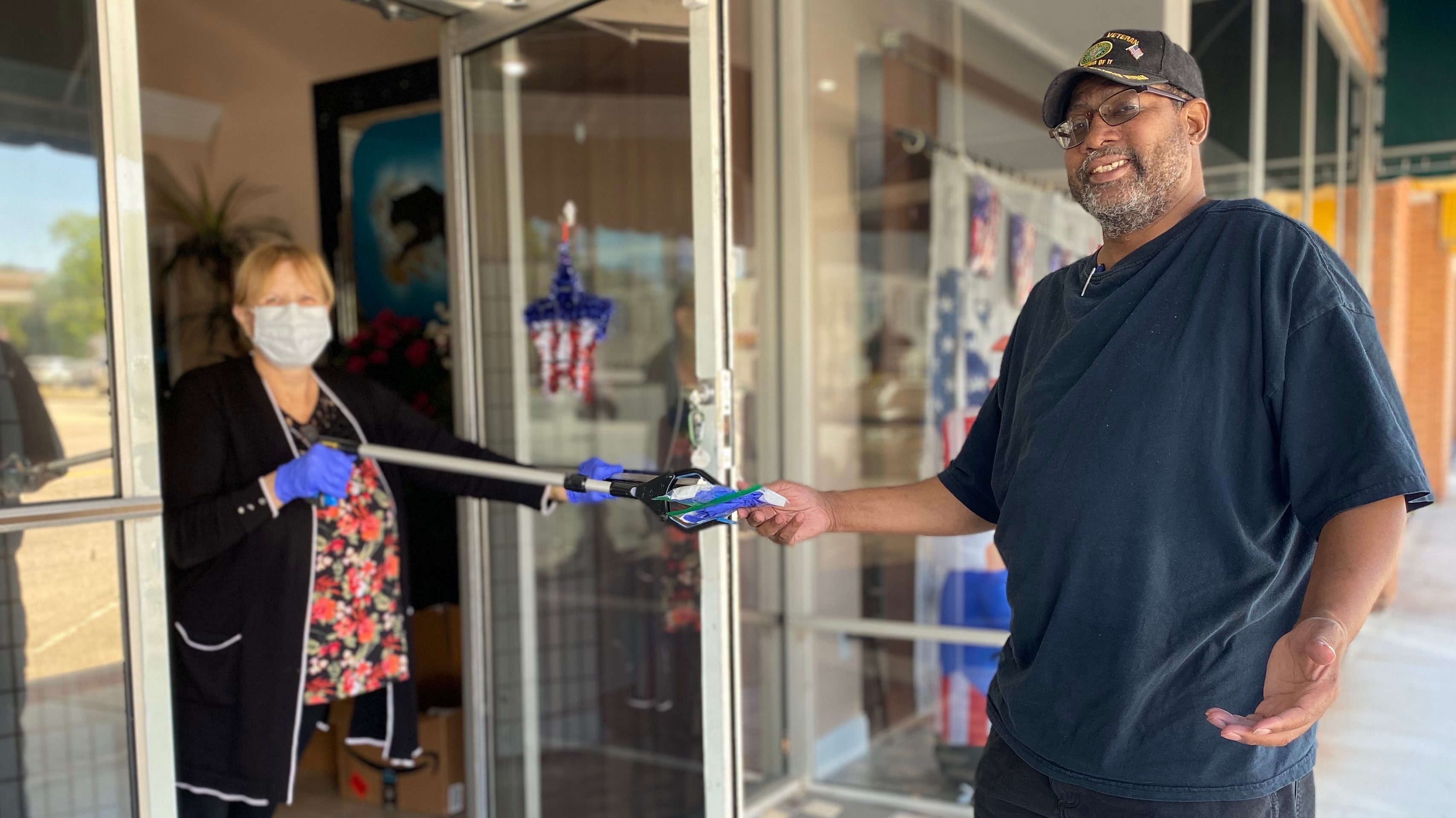 WINNSBORO – Kathy Owens, left, owner of Owen’s Trucking in downtown Winnsboro, and her employees handed out 150 mask and glove packets to the public...