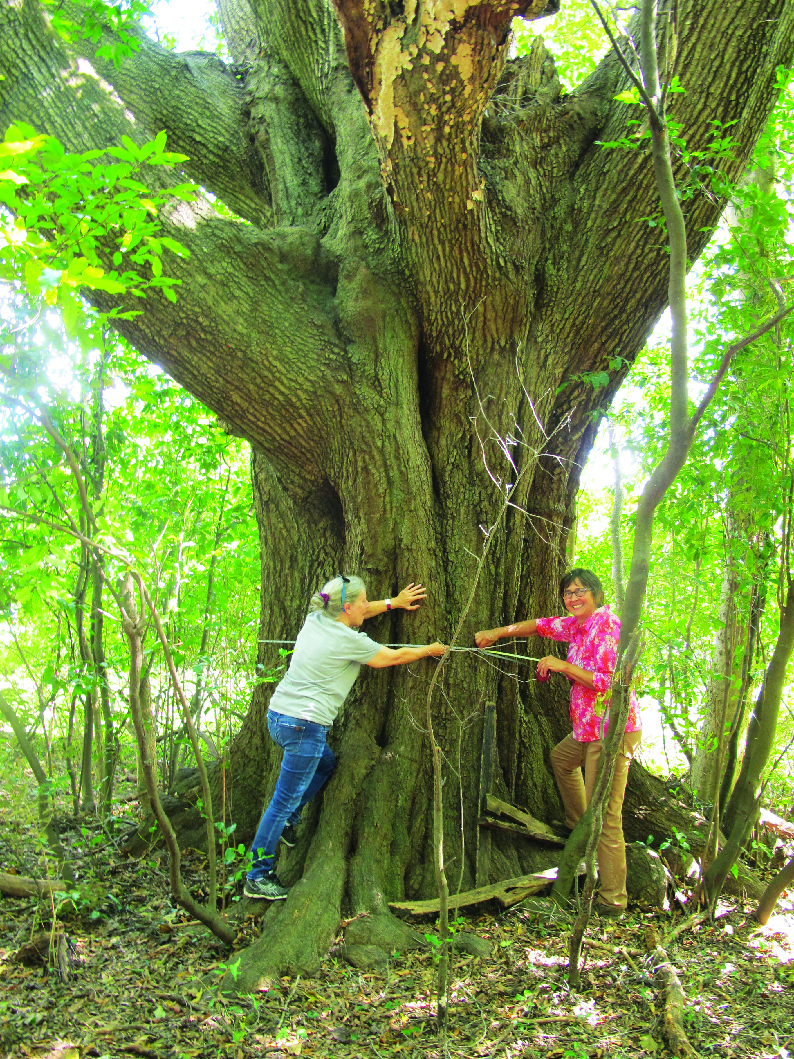Suzanne Johnson, Volunteer Archivist and Exhibits Curator at Fairfield County Museum, left, and the museum’s Executive Director Pelham Lyles measure the circumference of a giant...