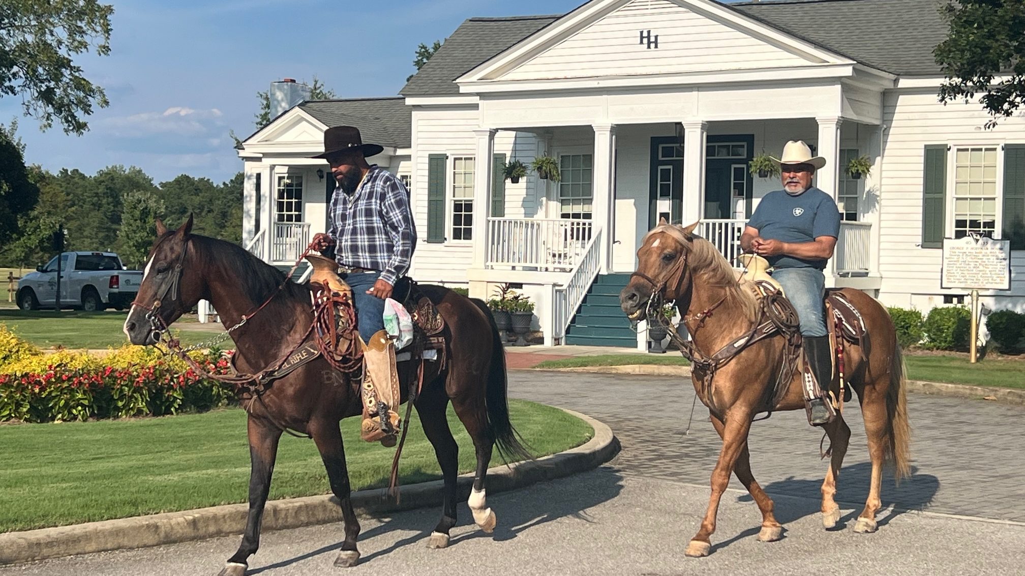 Claude Bundrick Road residents Rogelio Soto and Gabrielle Gomez rode their horses into downtown Blythewood on Monday. The Voice snapped the two cowboys mozeying around...