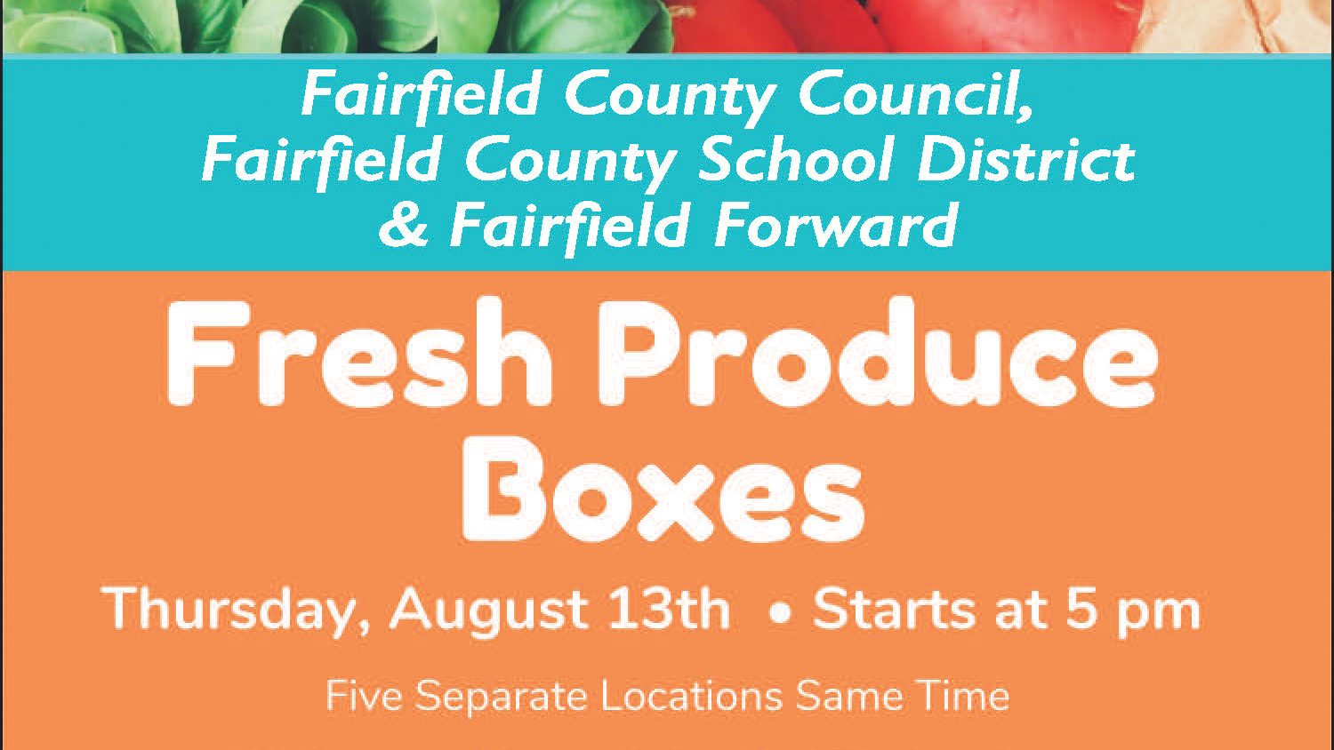 WINNSBORO – The sixth Fairfield County distribution of free boxes of fresh produce is scheduled for distribution at five separate locations at the same time...