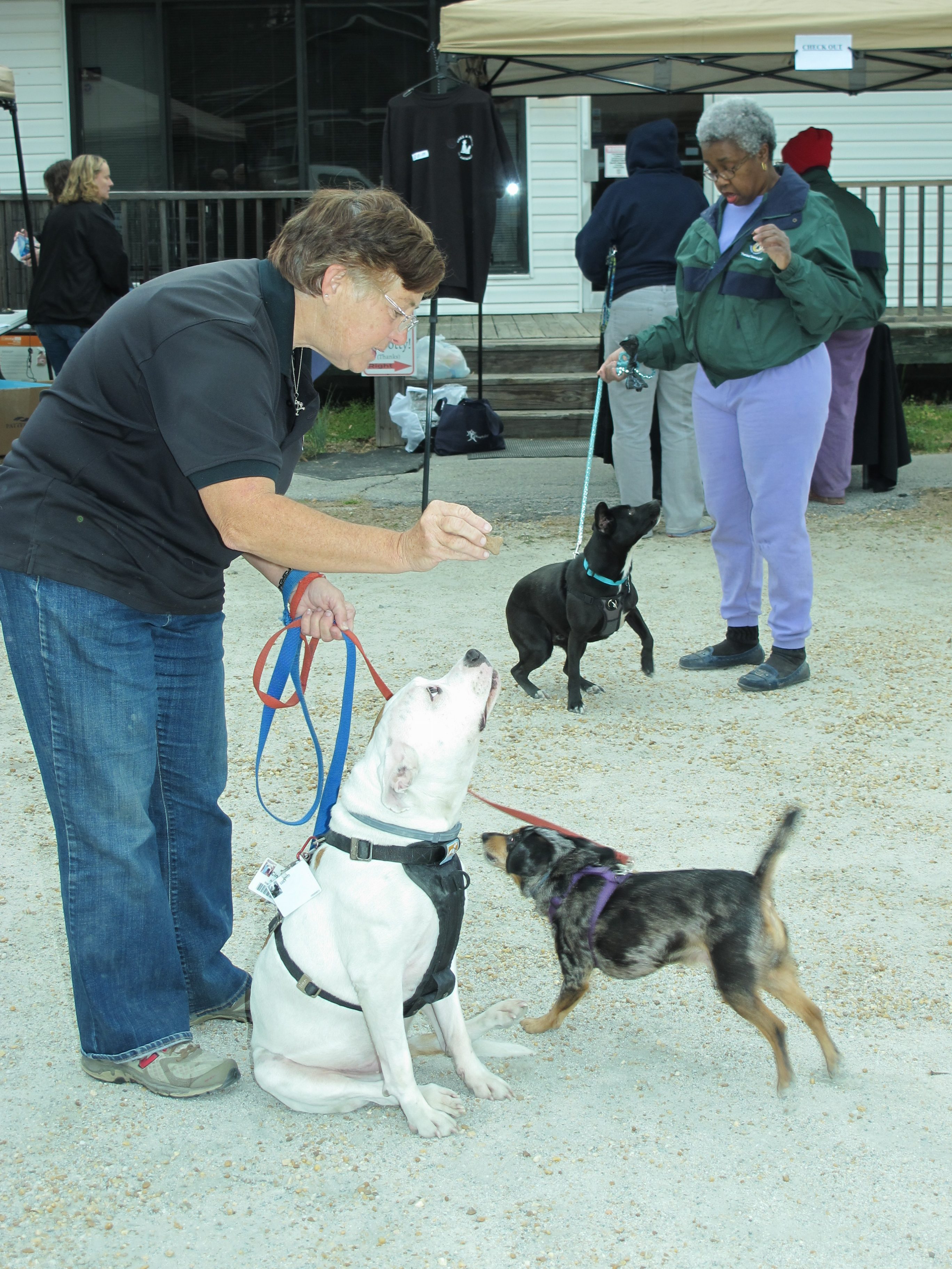 BLYTHEWOOD – Cindy Morgan and her rescues Lucy (sitting) and Riley stopped by MAFIA’s annual Spring Heartworm Clinic at Groomadog on Saturday for their heartworm...