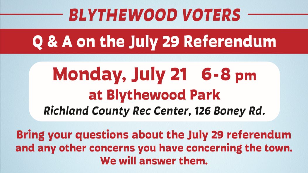 BLYTHEWOOD – Mayor Pro Tem Donald Brock, Councilman Rich McKenrick, and Councilwoman Andrea Fripp will host a meeting for Blythewood voters on Monday, July 21,...