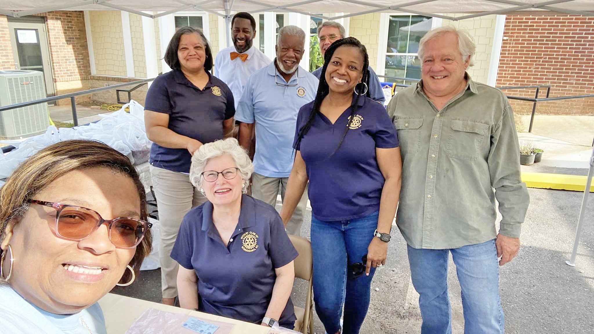 WINNSBORO – Winnsboro Rotarians (standing) Claudia Avery, Clementine Wood, J.R. Green, Arthur Lathan, Eric Robinson, Marilyn Butler, Jim Mulen and (seated) Sarah McMaster volunteered during...