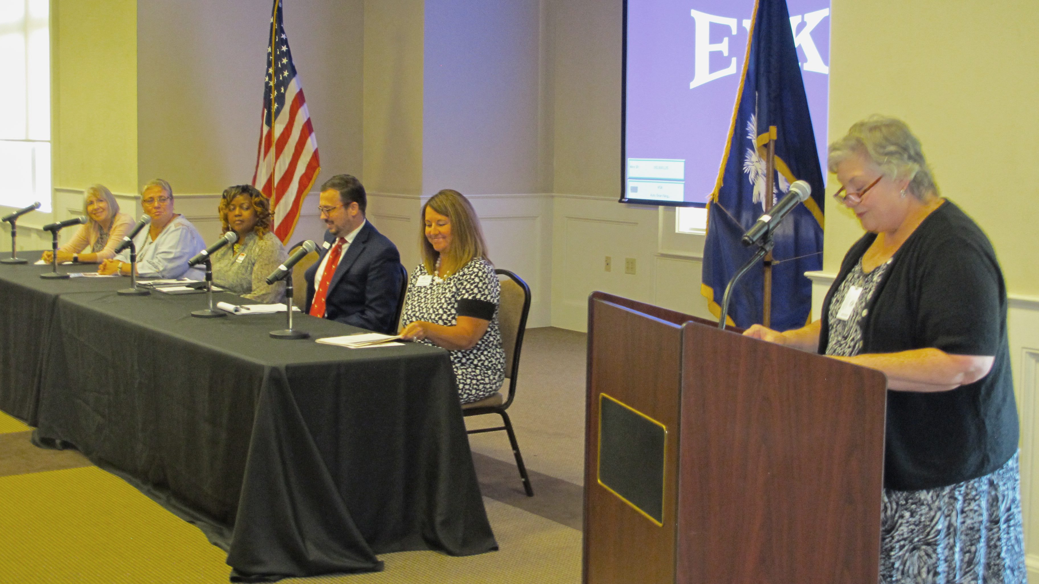 BLYTHEWOOD – Chris Keefer leads a panel of Richland 2 teachers in a discussion of employment and workplace retention during Tuesday’s Chamber of Commerce monthly...