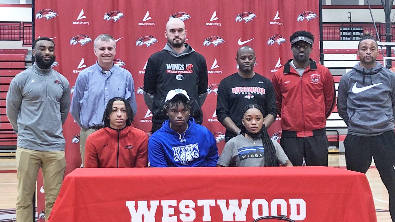 BLYTHEWOOD – Westwood High School held its first of two signing ceremonies on Wednesday, Feb. 3. Three Redhawk athletes, Julian Milligan, Bryson Felder and Kennedy...