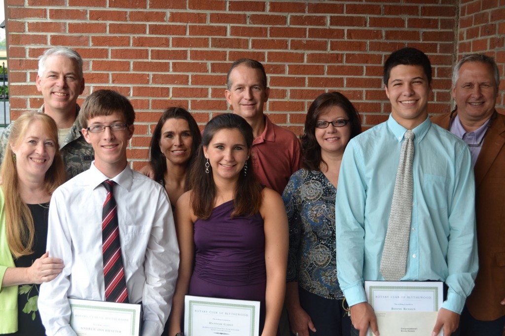 Blythewood High School seniors Andrew Hochhalter, left, Hannah Gable and Boone Benson were each awarded $1,000 scholarships by the Blythewood Rotary Club at its May 24 meeting.