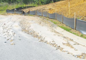 During a rainfall on Monday, May 28, a river of mud and water swept rocks and gravel off the cleared lots and down the street.