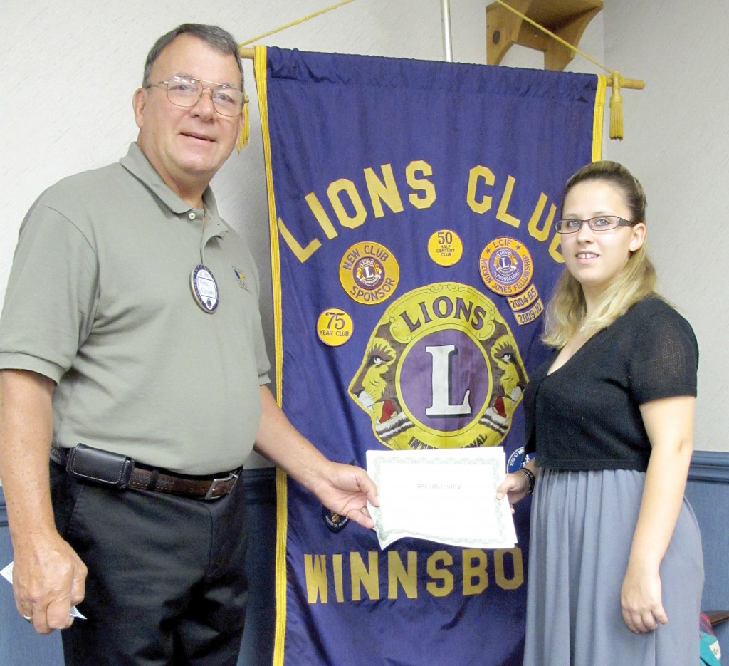 The Winnsboro Lions Club presented an annual scholarship award of $750 to a deserving Fairfield County graduate at its meeting June 5 at the Fairfield Memorial Hospital. Katie McLemore (right, with Lion’s Club President Gene Clemens), a 2012 graduate of Fairfield Central High School, and daughter of Tammie and Tommy McLemore of Ridgeway, was the recipient. Katie will attend Midlands Technical College, Airport Campus, to study for her Associates degree. She plans to be a paralegal. The annual scholarship alternates between Fairfield Central High School and Richard Winn Academy.