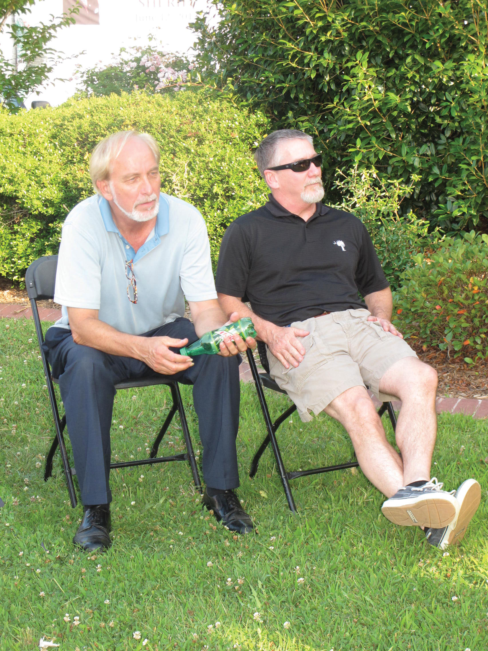 Mark Struhs and Roger Hovis enjoy a little toe-tapping music from Grainger & Rushing.