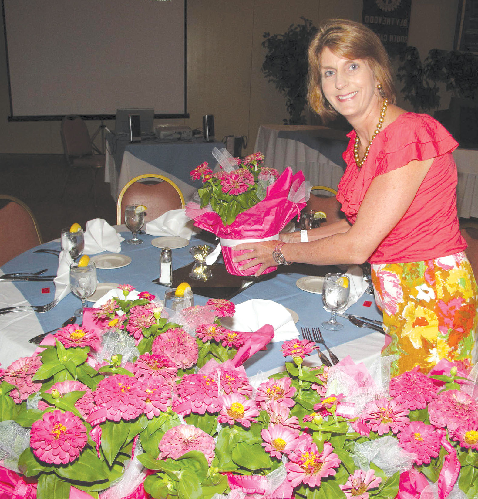 Blythewood Rotary Club members enjoyed dining and visiting at the Columbia Country Club Thursday, July 12. Incoming president Scott McClelland, and outgoing president Catherine Martin, were both there as well as Rotarian and Blythewood Mayor J. Michael Ross. Fun girl Joy Watkins decorated the tables with flower pots with secret take-home numbers.