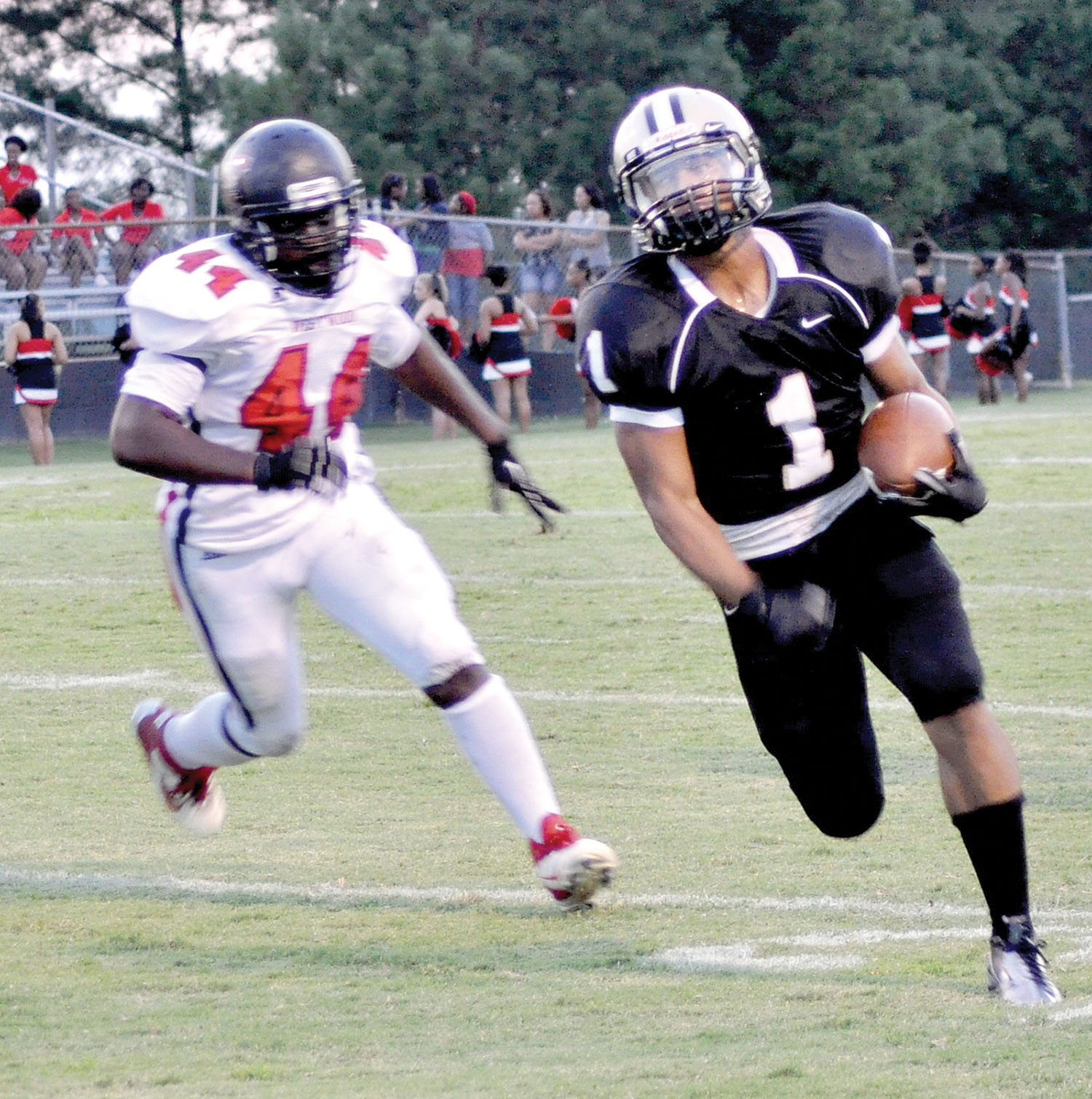 Davis said he was happy with his defense, which set their first score in motion when Raheim McDaniel recovered a Westwood fumble on the Redhawks’ 36-yard line. Rookie quarterback DeAndre Belton piloted the Griffins down to the Westwood 2 where workhorse Damien Bell hammered the ball into the end zone for his first of three rushing touchdowns on the night with 4:42 left on the clock in the first quarter. Bell would rack up 132 yards on the ground before the night was over.
