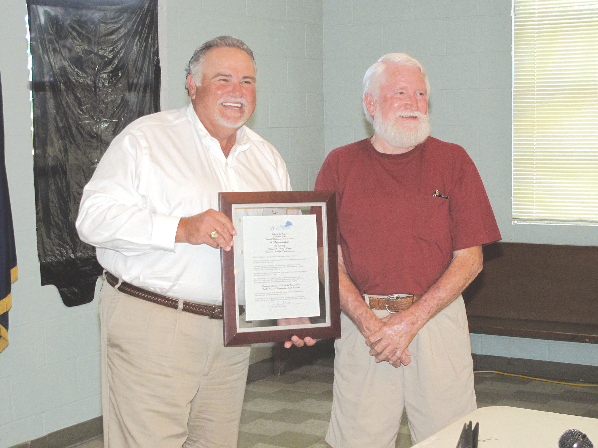 At a special called meeting of the Town Council on Aug. 16, Blythewood Mayor J. Michael Ross proclaimed Aug. 15 as ‘Billy Raines Day’ in the Town of Blythewood.