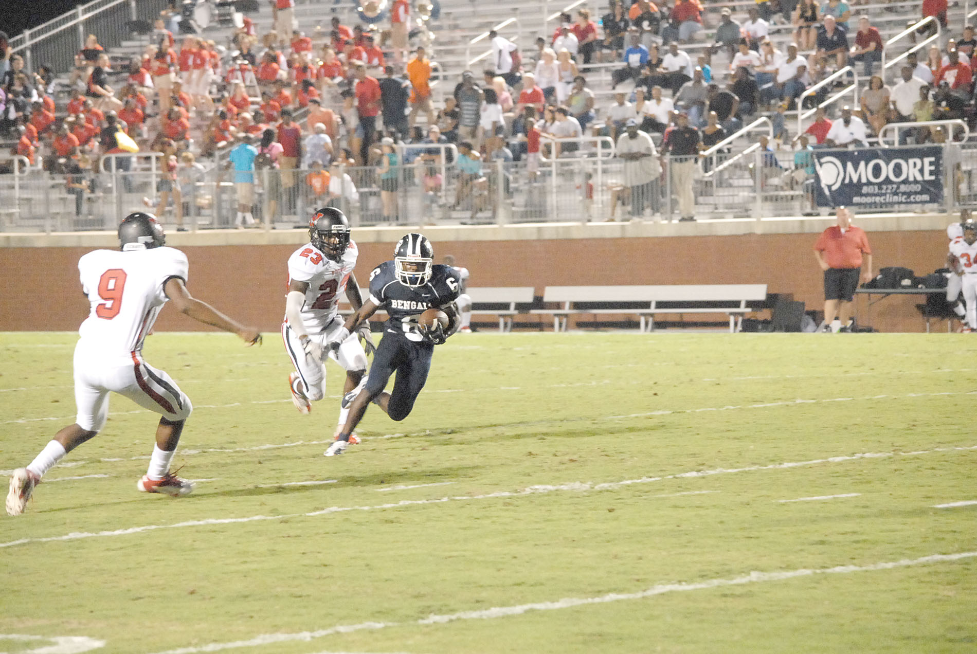 Friday night was the first ever cross-town matchup between the Blythewood Bengals and the Westwood Redhawks. The Bengals delivered the first knockout blow of the series with a lopsided 57-0 victory. Blythewood has seven years of varsity experience under their belt, including the last four in 4A. Westwood is playing their first year on the varsity level in 3A, and right now Westwood and their head coach Rodney Summers are going through the learning curve.