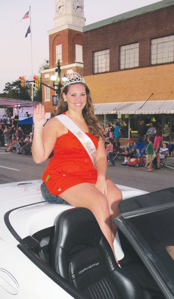 Miss Rock Around the Clock 2012, Anna Gray Walters, greets her subjects Friday night with her regal wave.