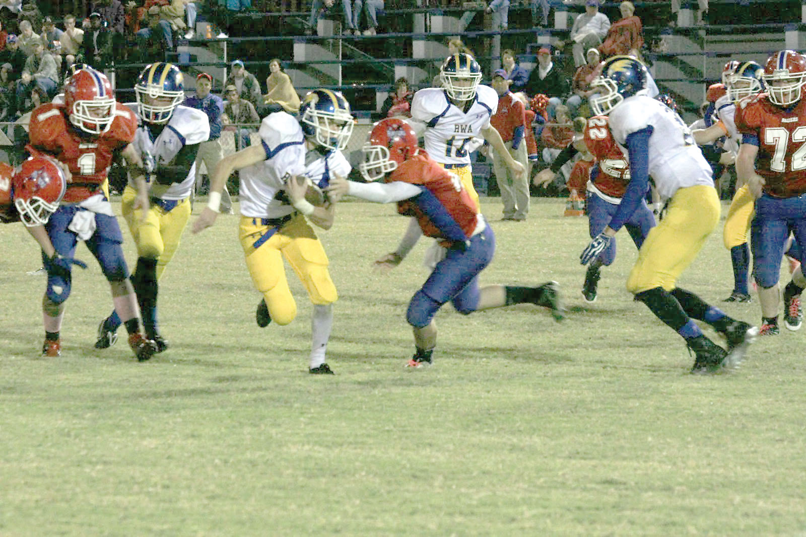 Plagued by fumbles throughout the game, the Raiders managed to recover their first fumble inside the red zone to keep the ball in their possession just as time expired in the first quarter. Less than 60 seconds had ticked off the second quarter clock when Garvin scored his second TD for the Raiders. The PAT was no good, but the Raiders had cut the RWA lead to 22-12.