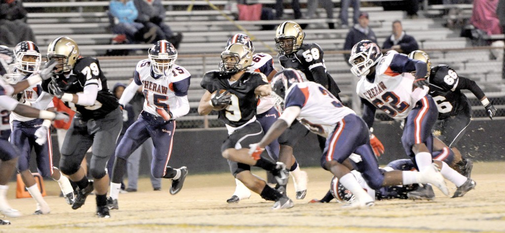 After dueling to a scoreless draw in the first quarter, the Braves got on top with a 32-yard field goal by James Davis with 7:32 left in the second. The drive, which began with 28 seconds to go in the first quarter on the Cheraw 36, could have ended much differently. Having chewed up the Griffin defense to drive the ball to the Fairfield 10, the Braves lined up to go for a fourth-and-1. An illegal procedure penalty on the delayed snap cost the Braves 5 yards, however, and forced the kick.