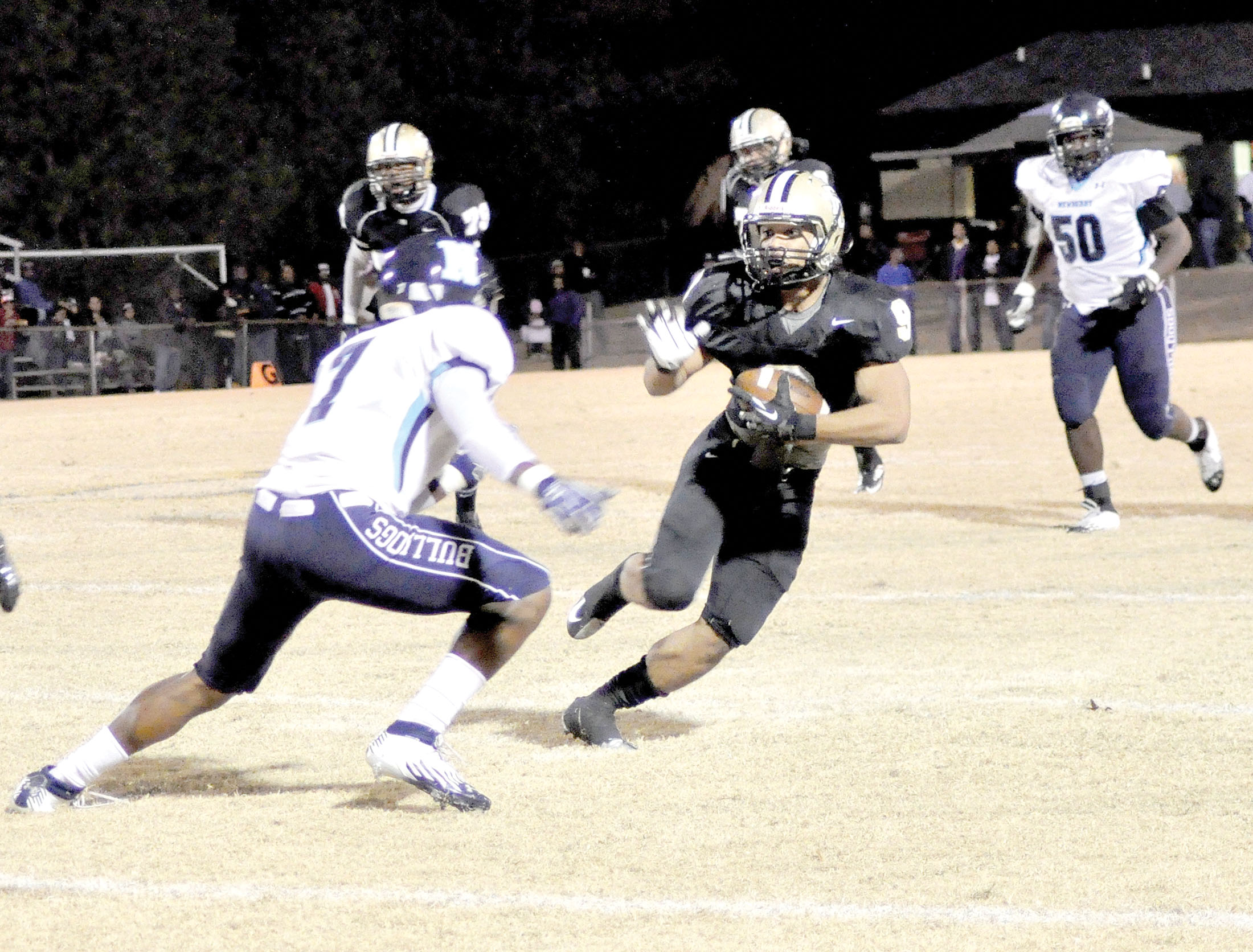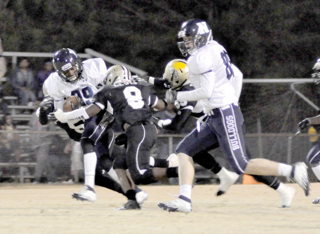 Friday night’s showdown was a brutal knockabout, a war of attrition, with the oversized Bulldogs clamping down on the Griffin running game early. Although the Griffins, on the first snap of the opening possession, set themselves up with a first-and-goal at the Newberry 9, the 75-yard pass from DeAndre Belton to Kewaun Squirewell went for naught as the Newberry defense put up a tremendous goal-line stand.